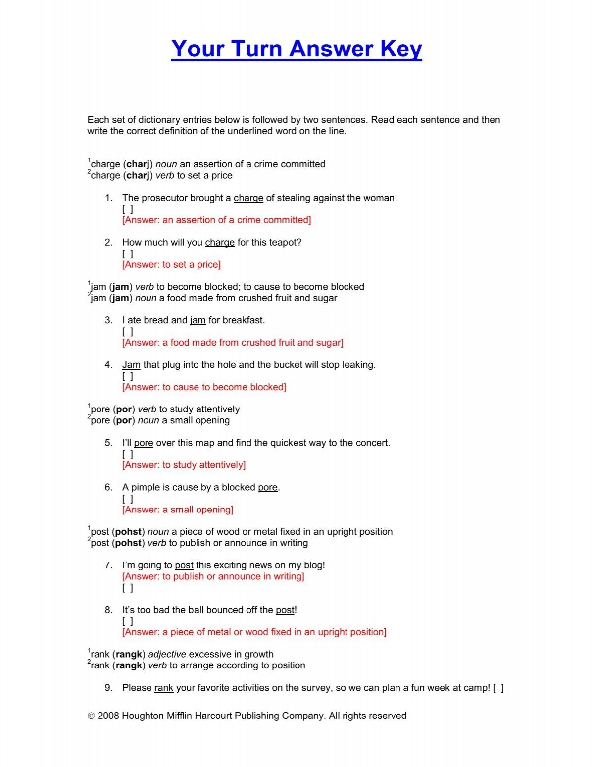 Your Turn Answer Key Houghton Mifflin Harcourt