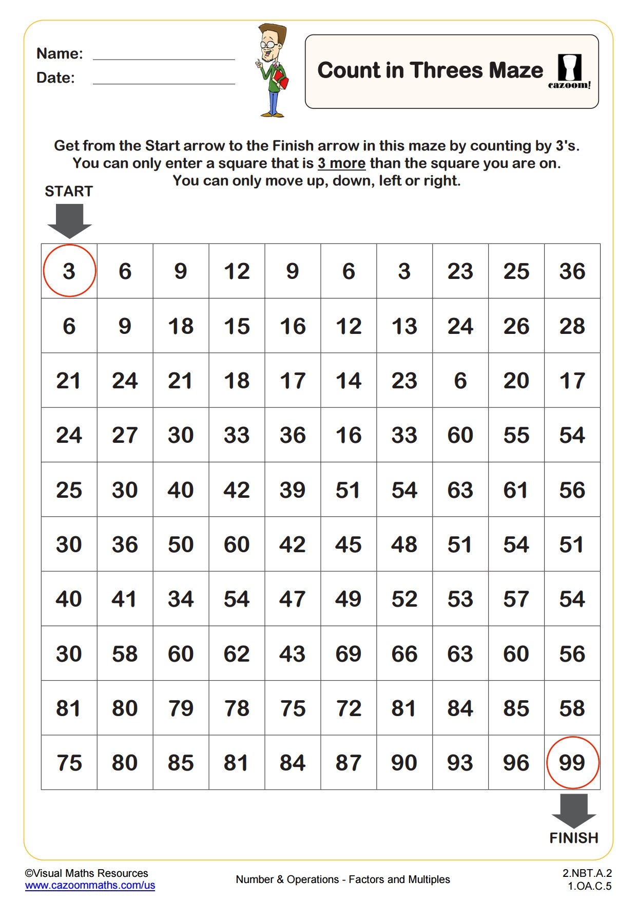 Count In 3s Maze Fun And Engaging 2nd Grade PDF Worksheets