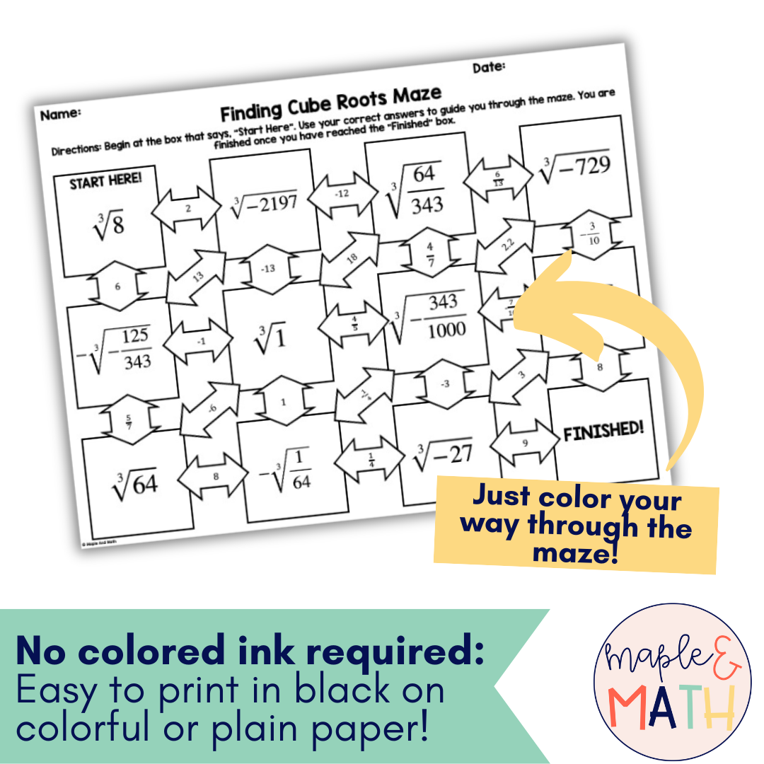 Finding Cube Roots Printable Maze Activity Worksheet 8th Grade No Prep Classful