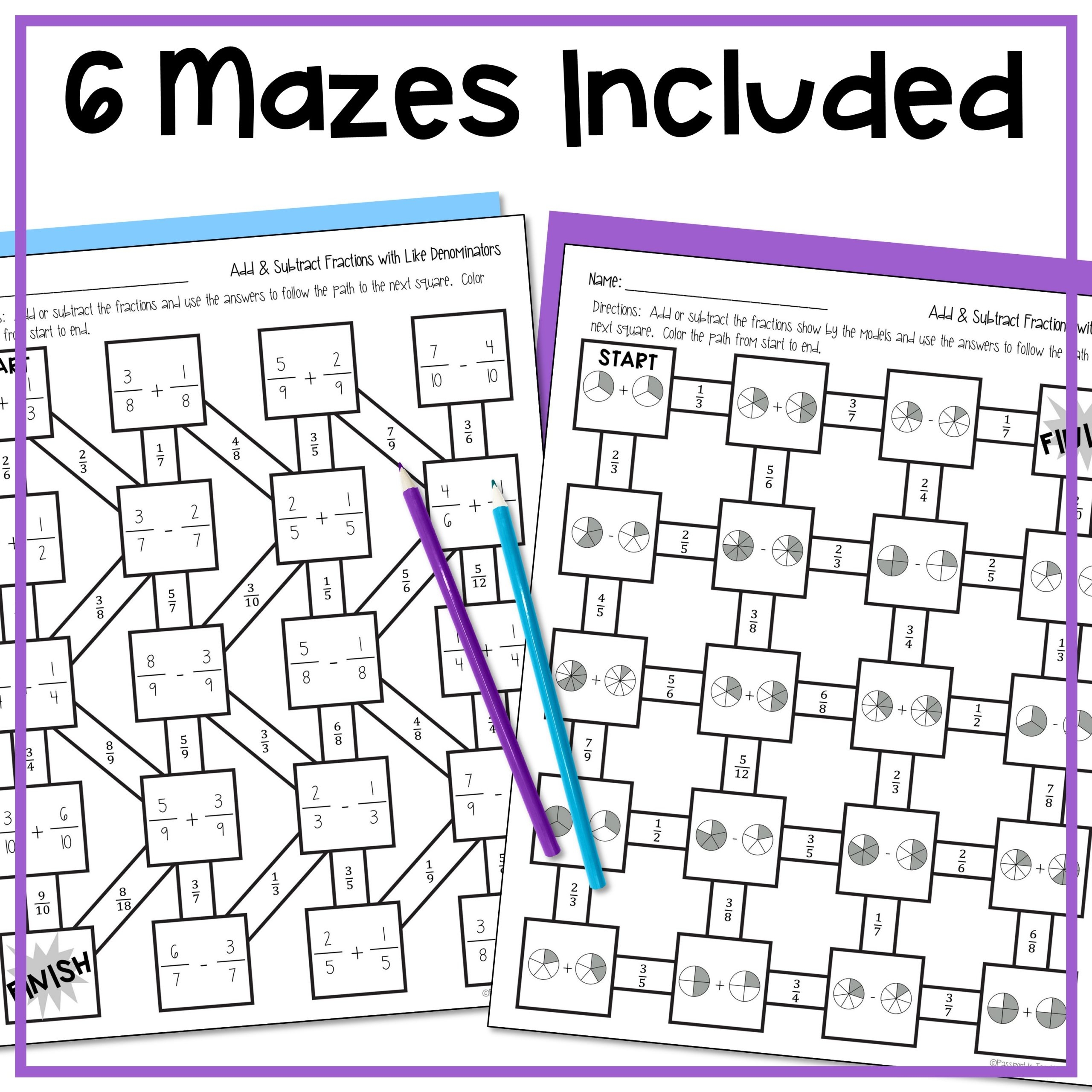 Add U0026 Subtract Unlike Fractions Math Maze By Teach Simple