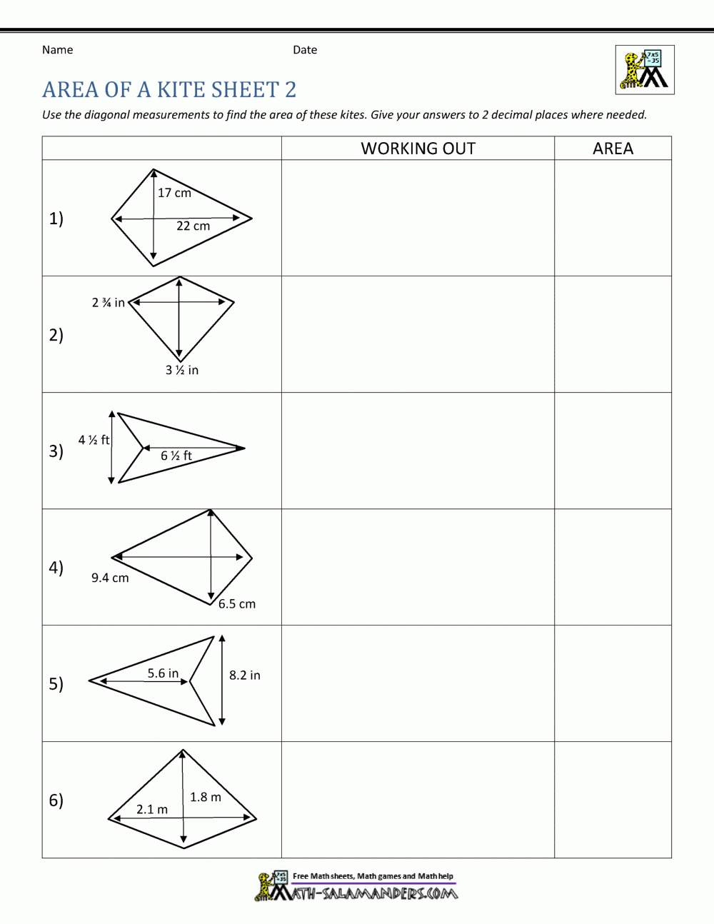 Area Of A Kite Calculator Worksheets Library