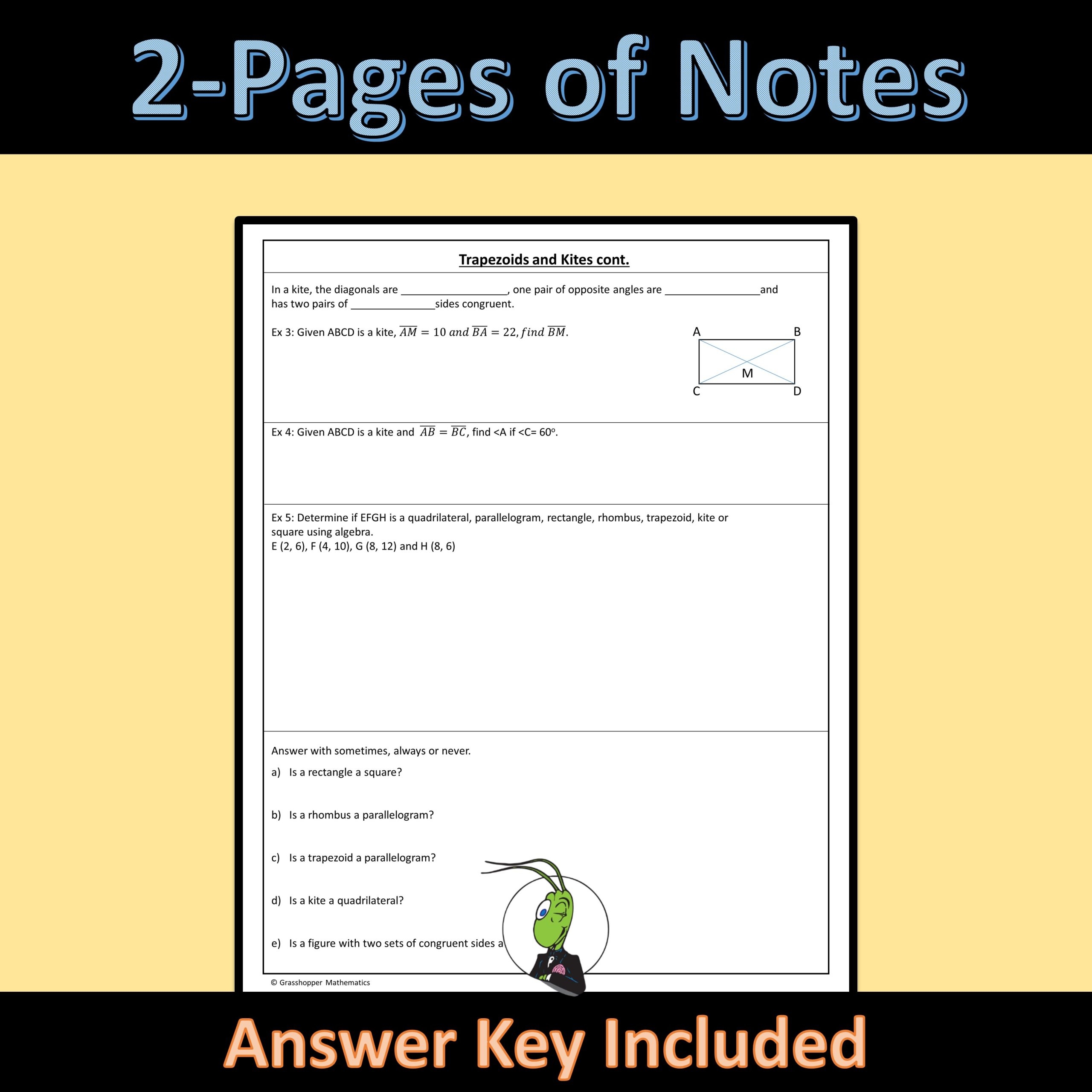 Trapezoid And Kites Properties Guided Notes Quadrilateral Polygon Geometry Made By Teachers