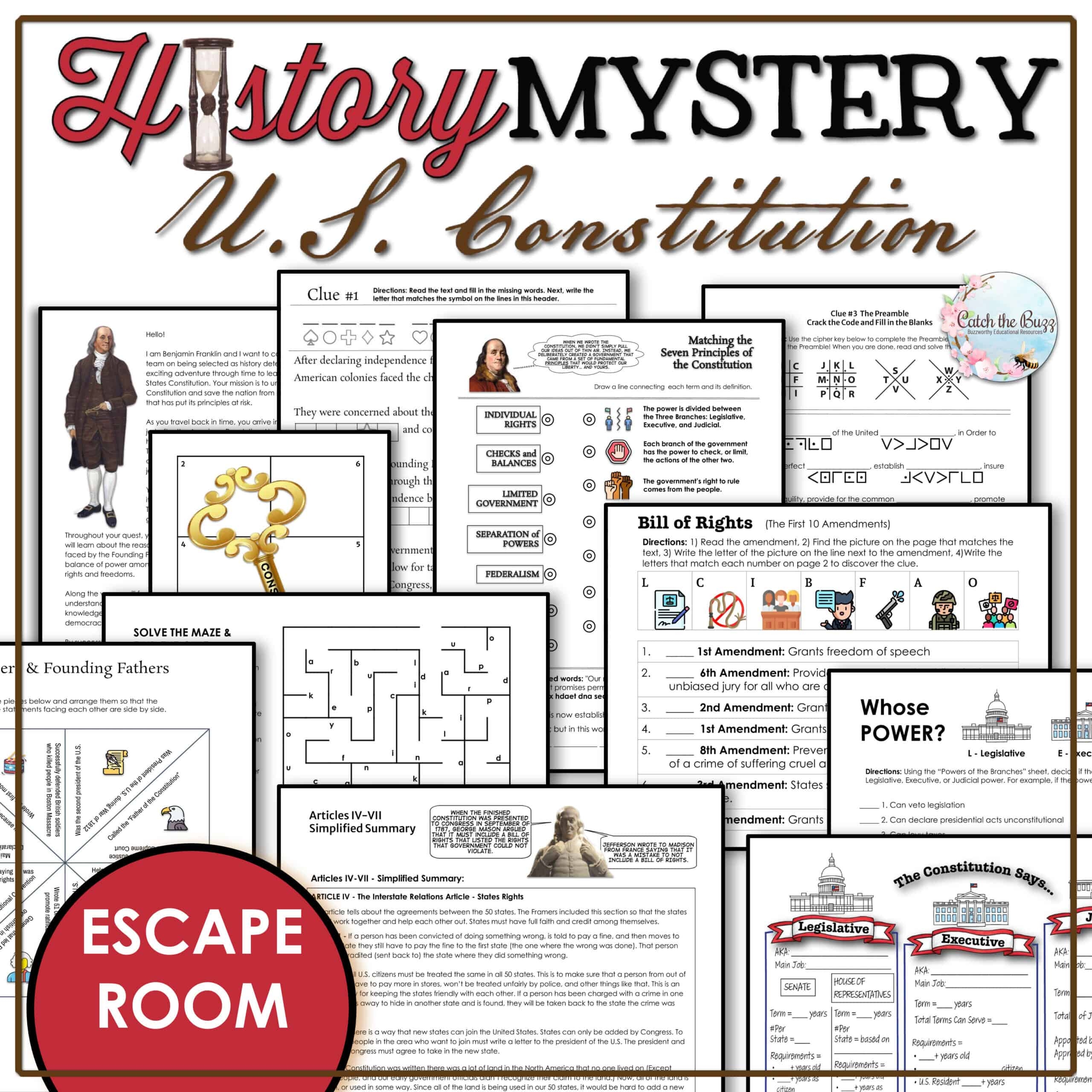 Constitution Unit Lesson Plan History Mystery Escape Room