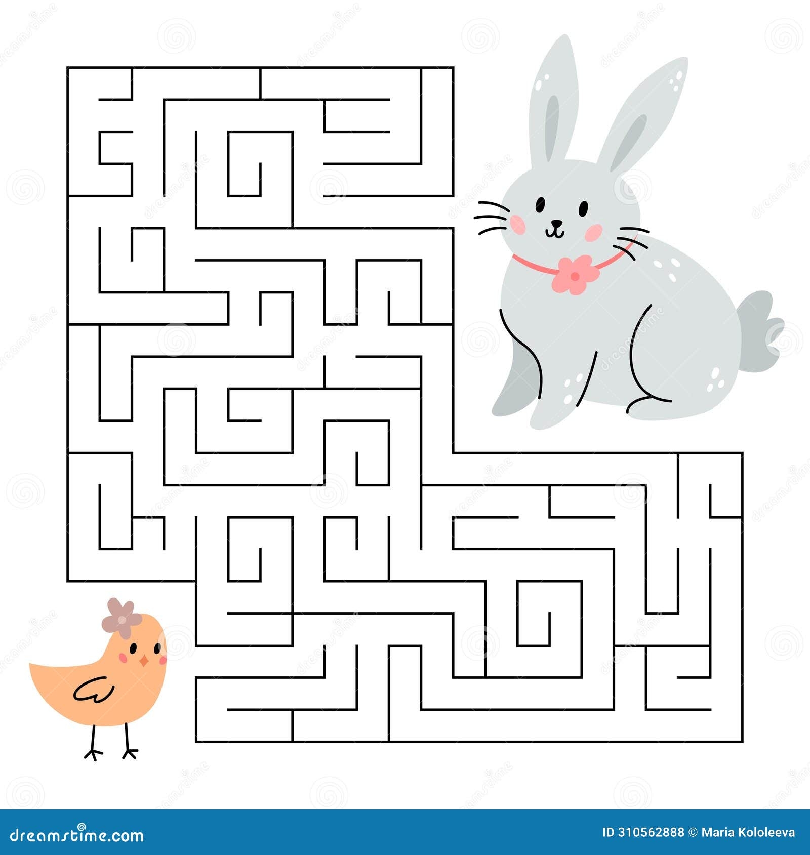 Spring Maze Game For Kids Cute Bunny Looking For A Way To The Chick Happy Easter Printable Worksheet Stock Vector Illustration Of Search Learning 310562888