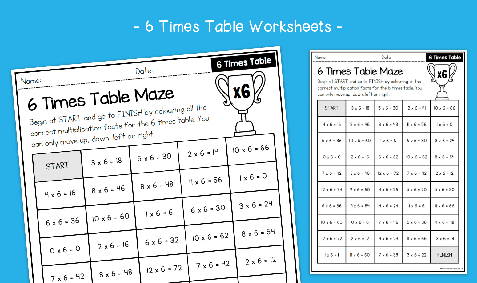 6 Times Table Maze Activity Worksheets KS2 Multiplication Primary Maths