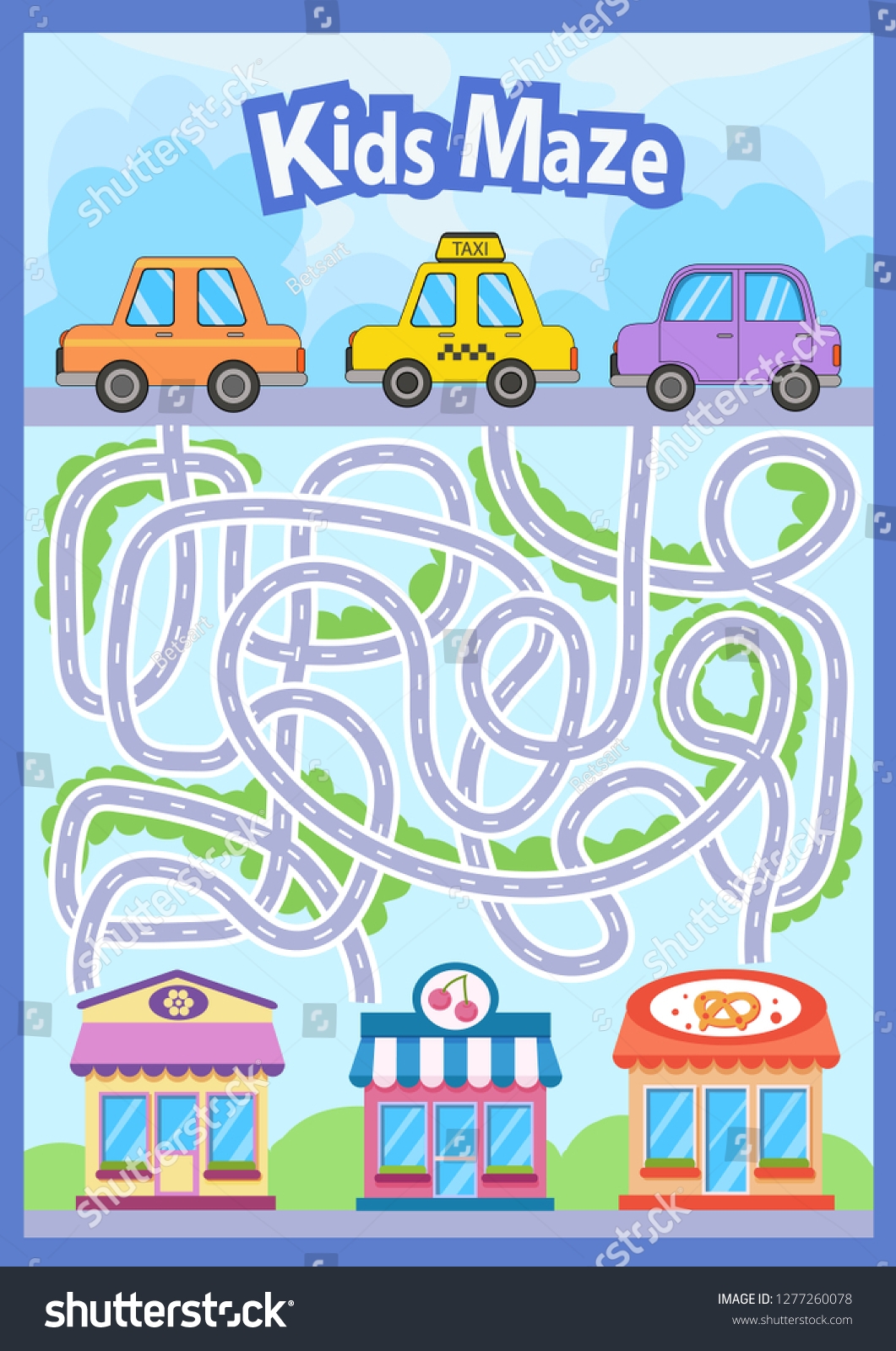 Children Maze Cars Shops Kids Labyrinth Stock Vector Royalty Free