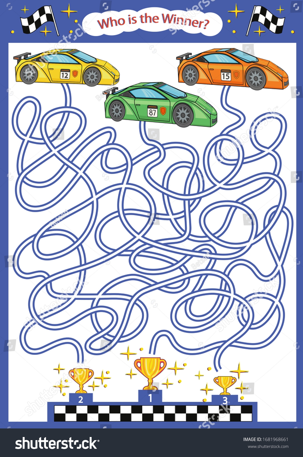 Children Maze Racing Cars Labyrinth Game Stock Vector Royalty