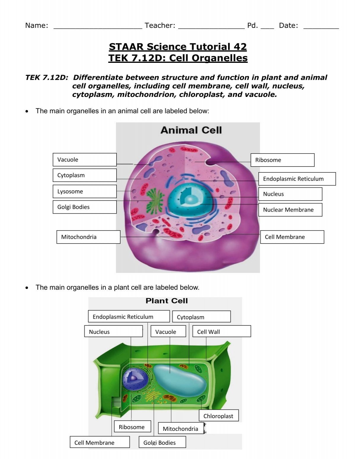 STAAR Science Tutorial 42 TEK 7 12D Cell Organelles