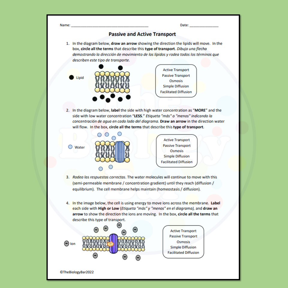 ESL Biology Cell Transport Worksheet Made By Teachers Worksheets Library