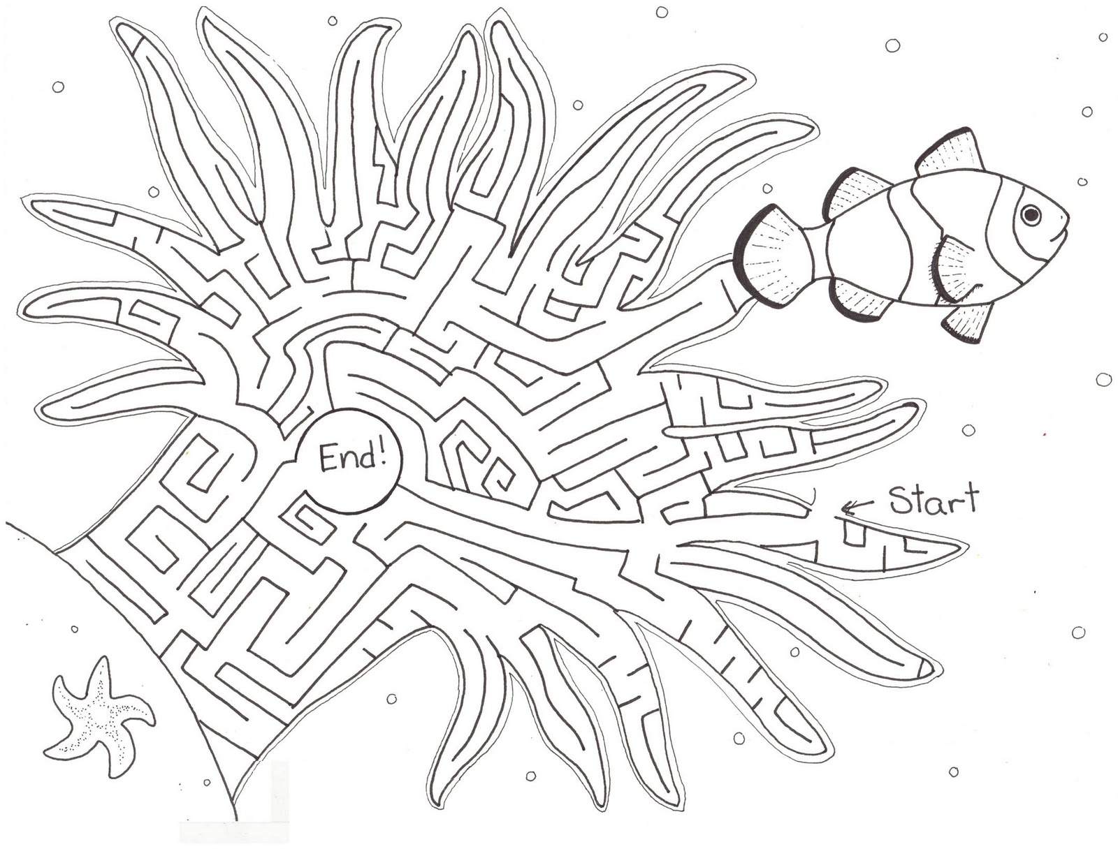 Clownfish And Sea Anemone Maze Worksheet