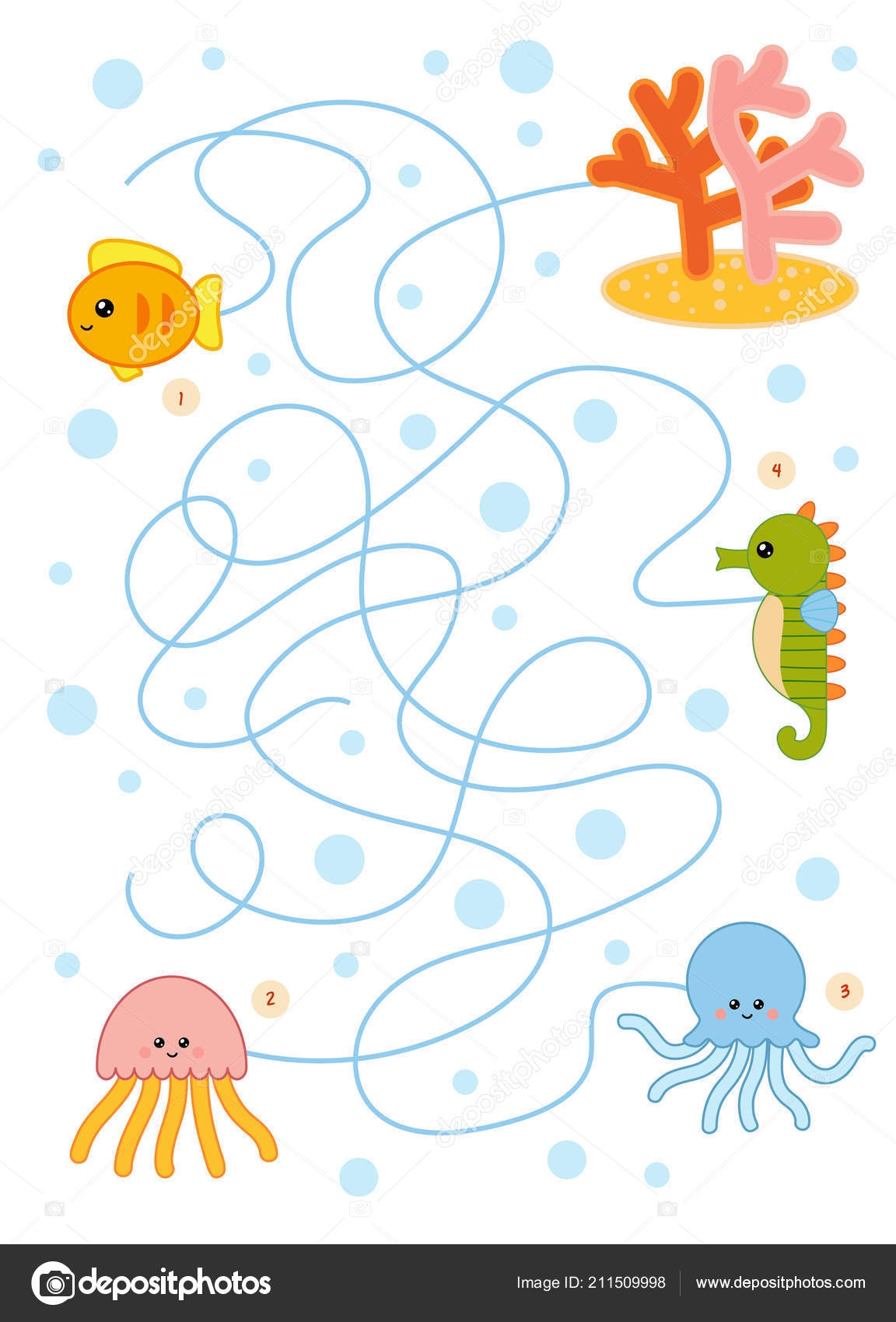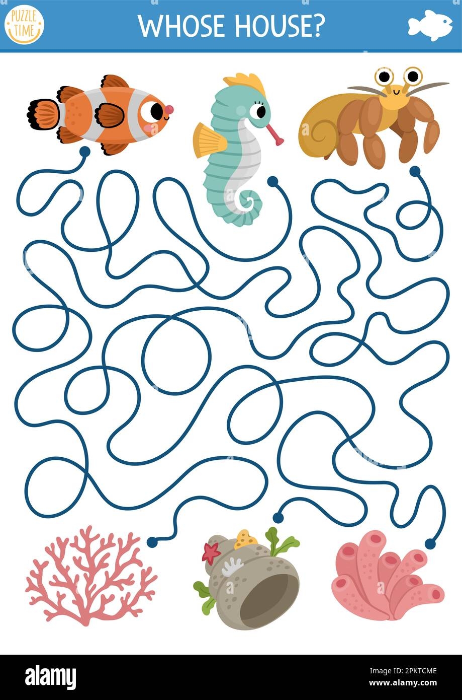 Under The Sea Maze For Kids With Clown Fish Seahorse Hermit Crab And Their Houses Ocean Preschool Printable Activity With Corals Sea Anemone Shel Stock Vector Image U0026 Art Alamy