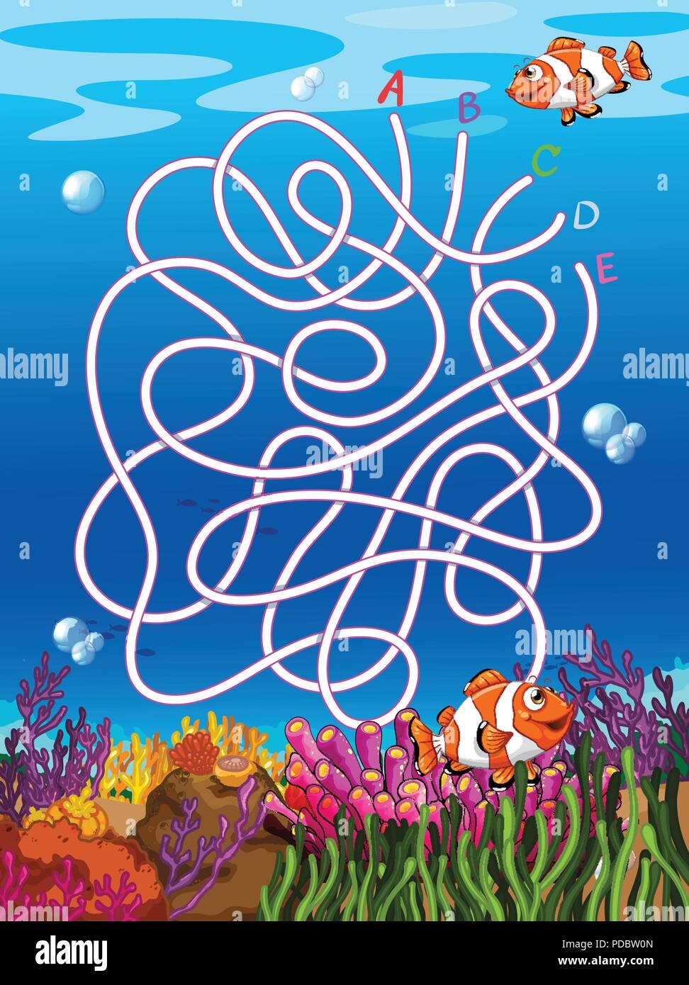 Underwater Maze With Clown Fish Illustration Stock Vector Image U0026 Art Alamy