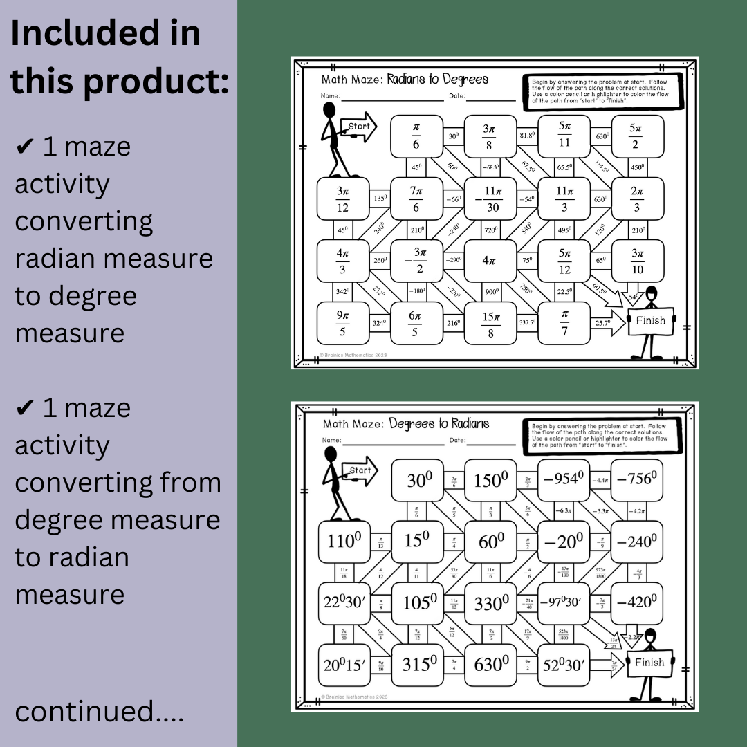 Degrees And Radians Mazes