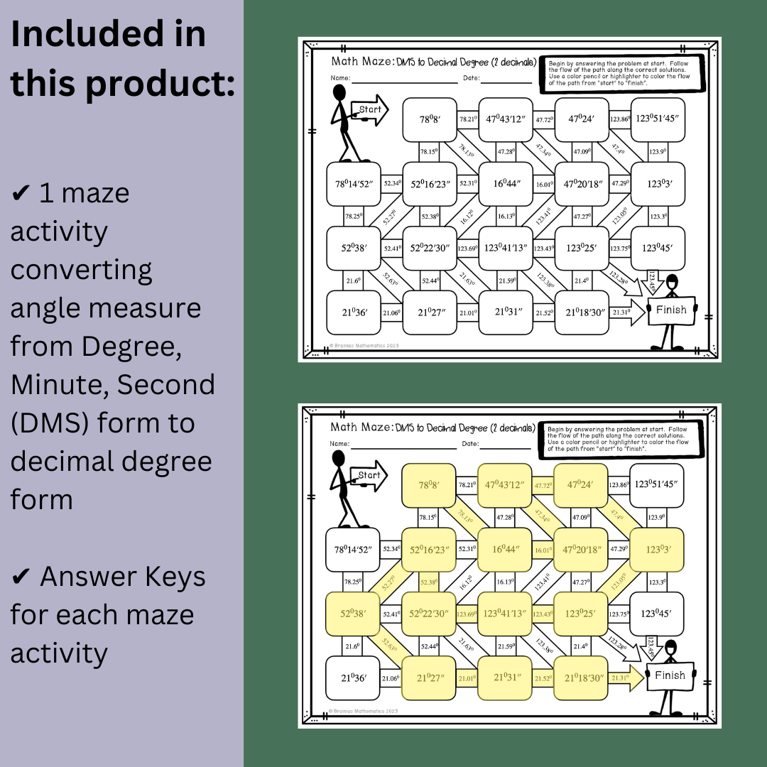 Converting Between Radian Degree And DMS Maze Activity Classful Worksheets Library