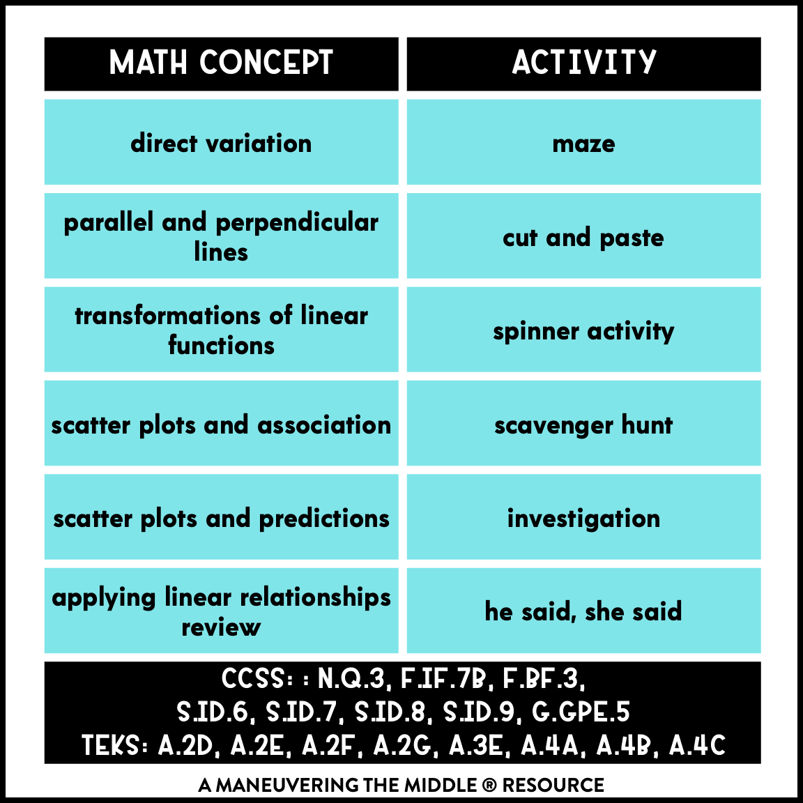 Applying Linear Relationships Activity Bundle Algebra 1 Maneuvering The Middle
