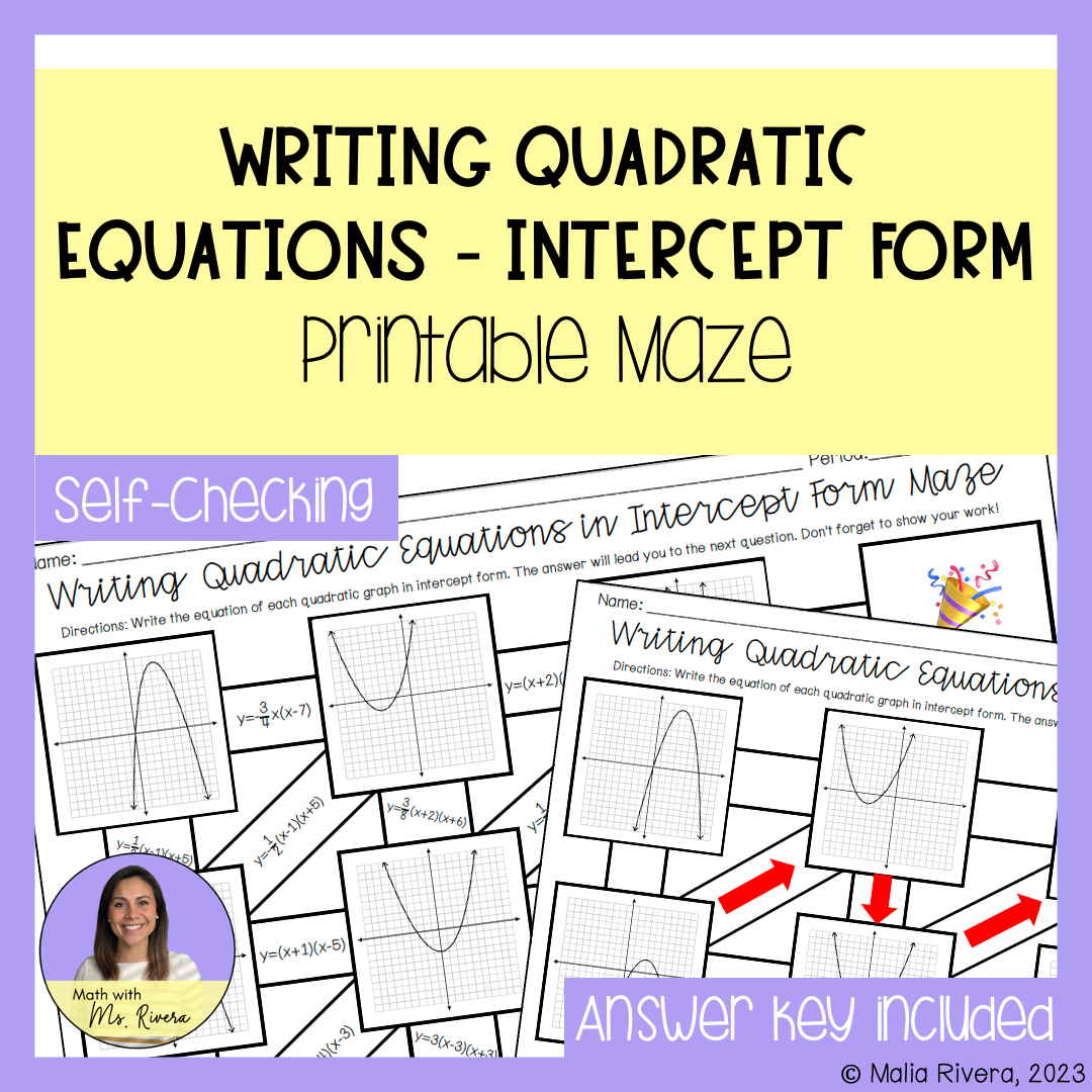 Writing Quadratic Equations From Graphs In Intercept Form Maze Worksheet Made By Teachers