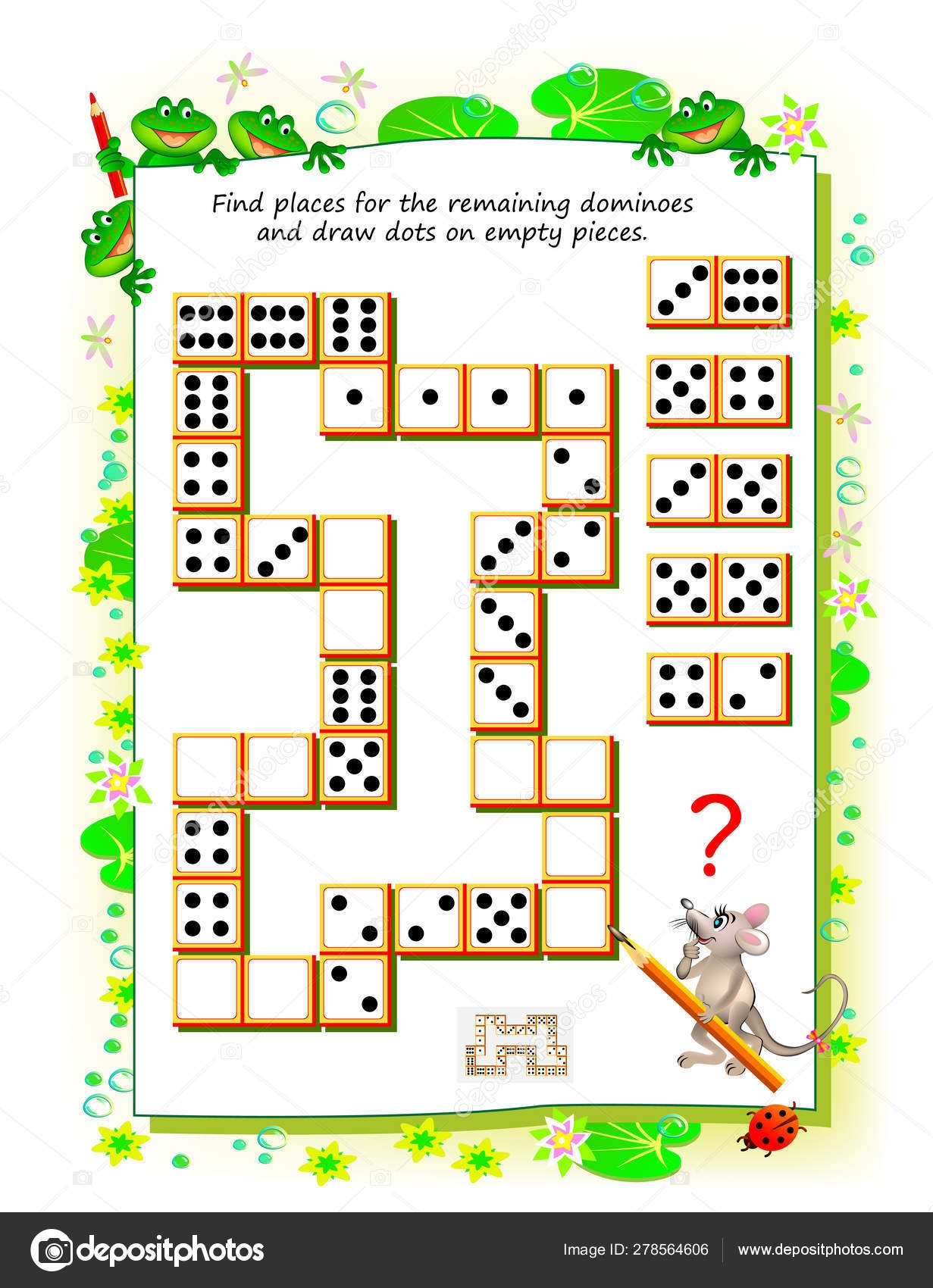 Logic Puzzle Game Little Children Need Find Places Remaining Dominoes Stock Vector By Nataljacernecka 278564606