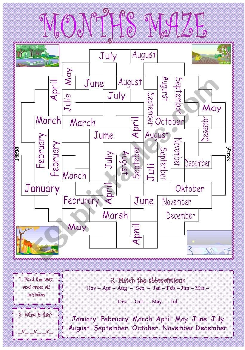 MAZE Of MONTHS 13 EXERCISES Quizz Bookmark FCs Crossword Domino Etc 11 pages KEY PRINTER Friendly EDITABLE A1 Level ESL Worksheet By Moravc