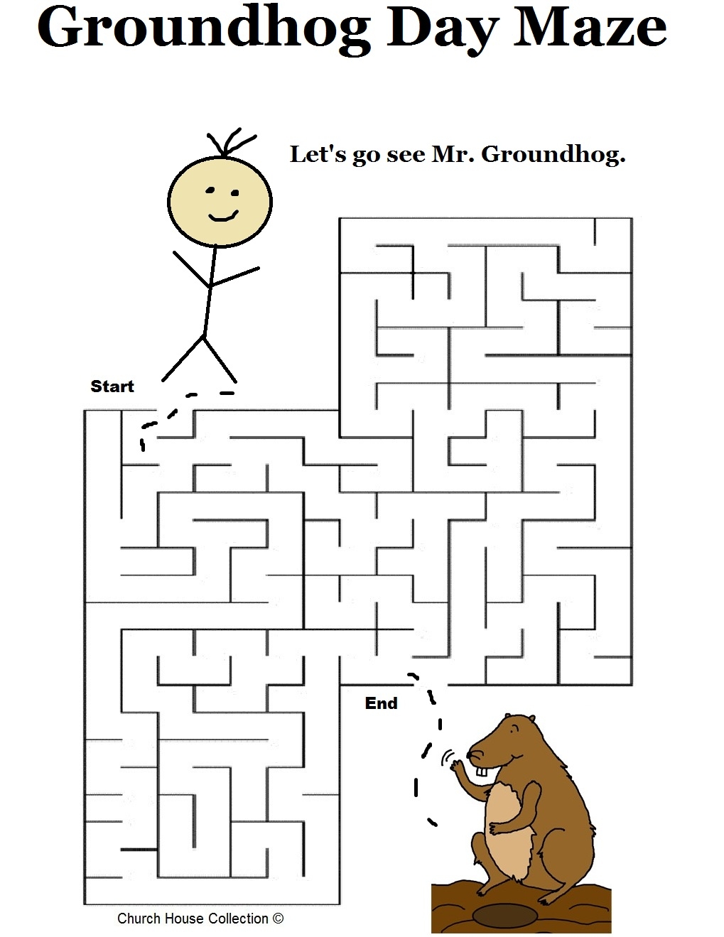 Easy Groundhog Day Maze Worksheets