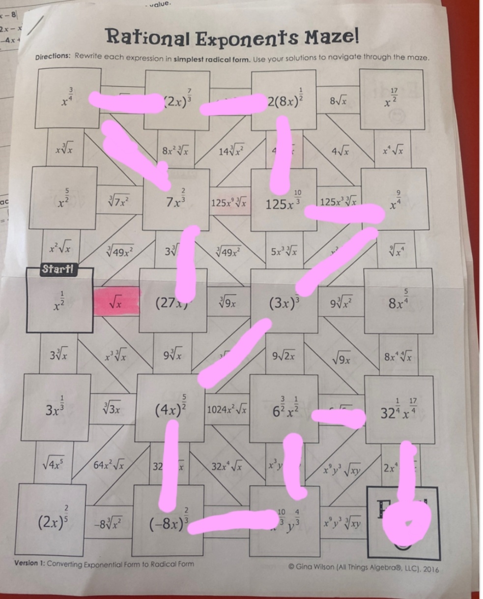 Exponent Rules Maze Worksheet Answers Gina Wilson
