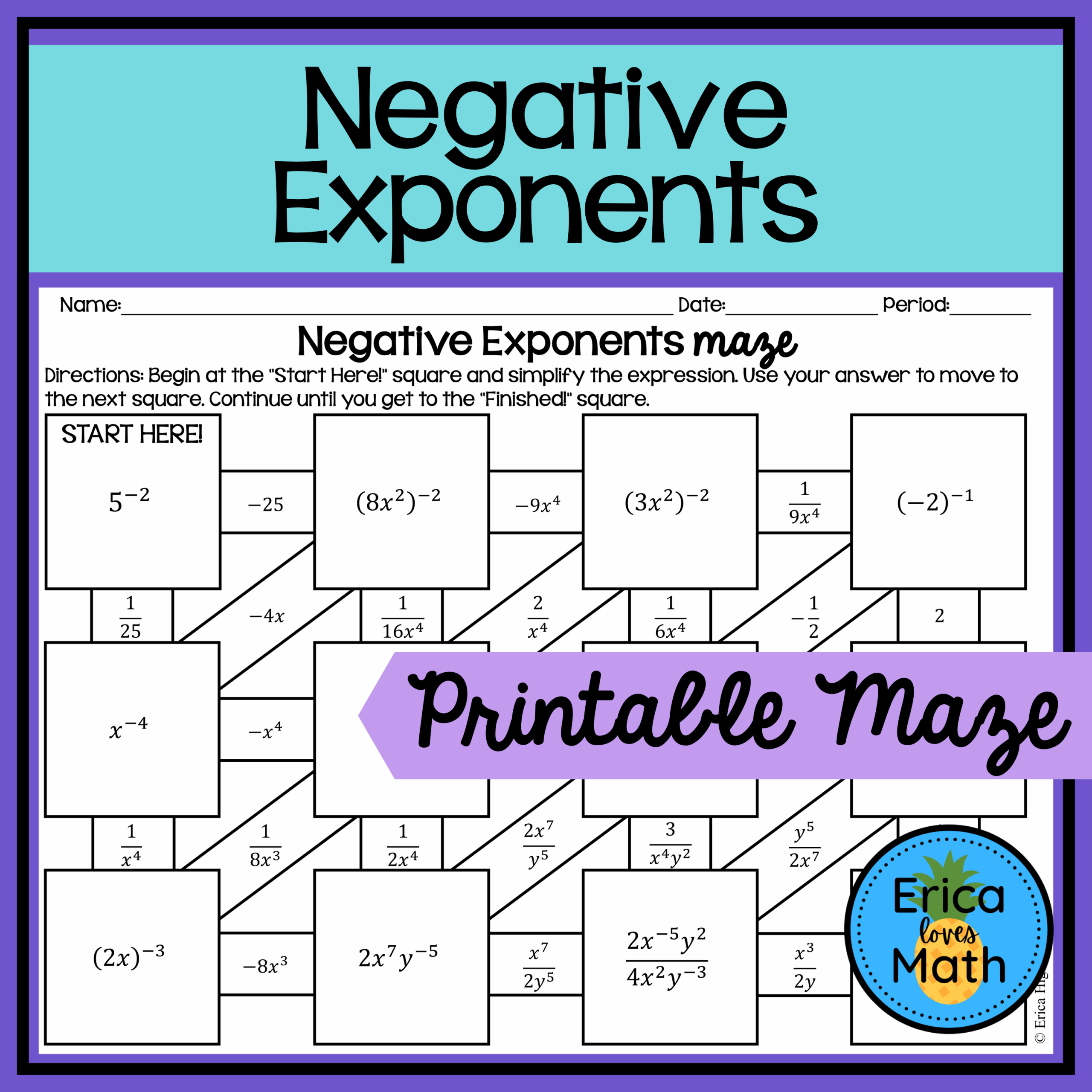 Exponent Rules Maze Worksheet