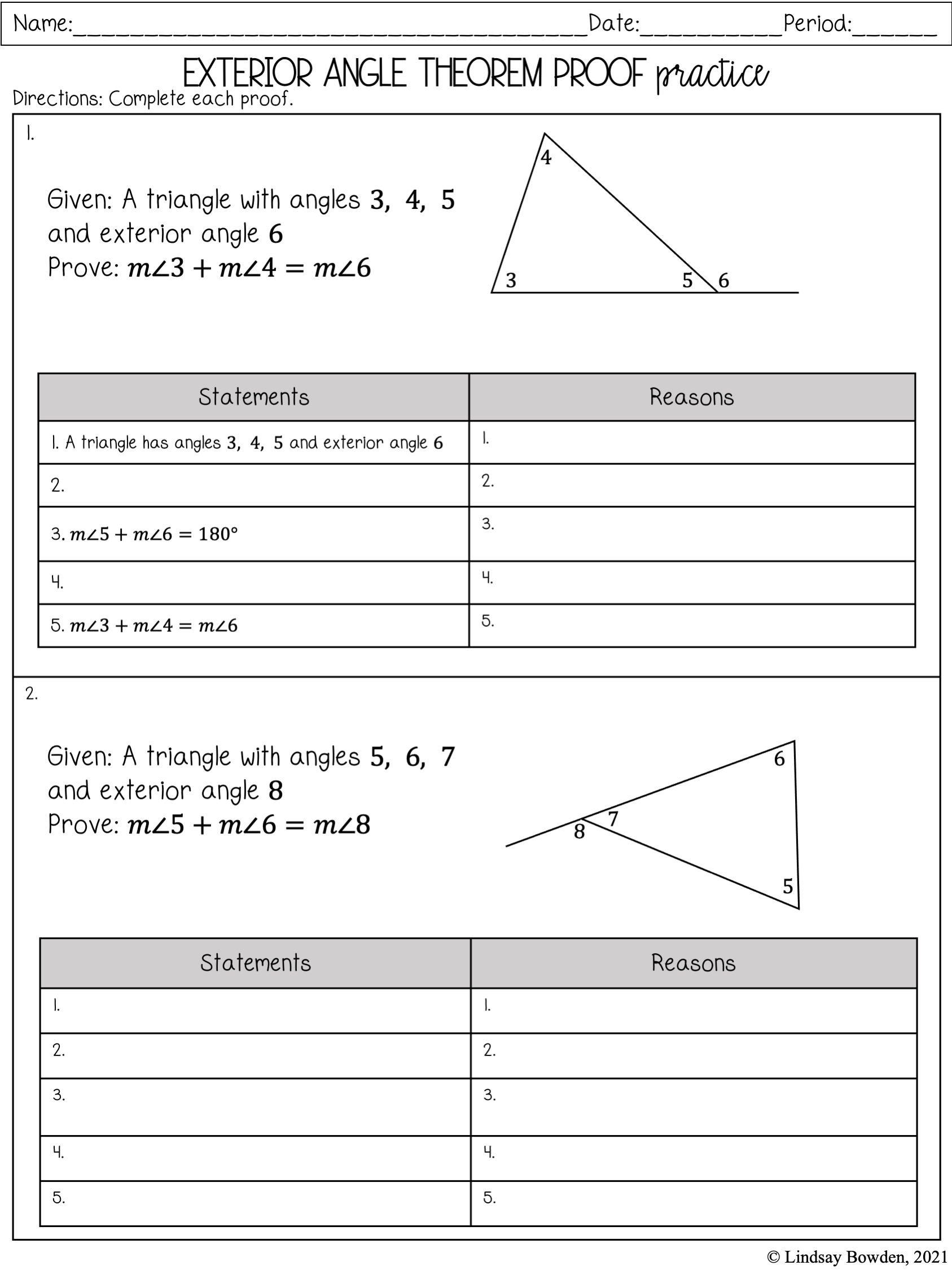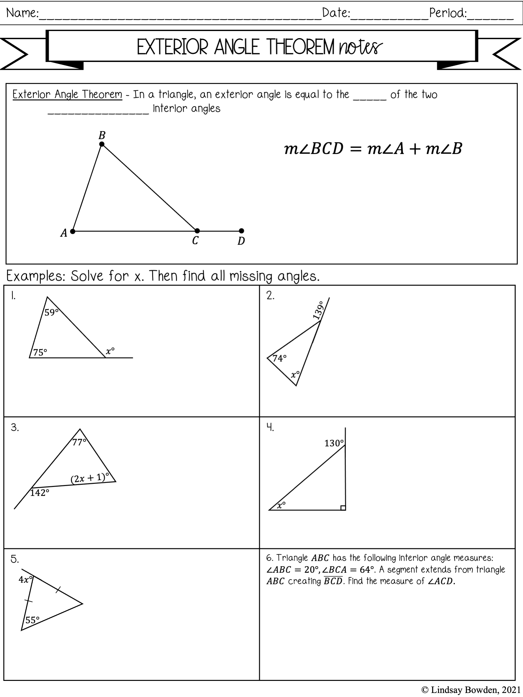 Exterior Angle Theorem Notes U0026 Worksheets Lindsay Bowden