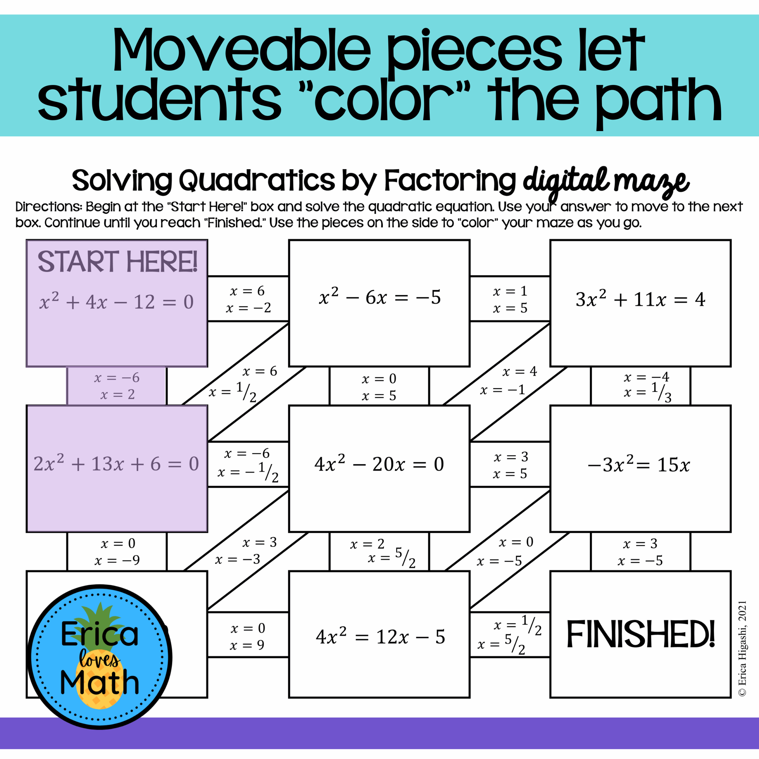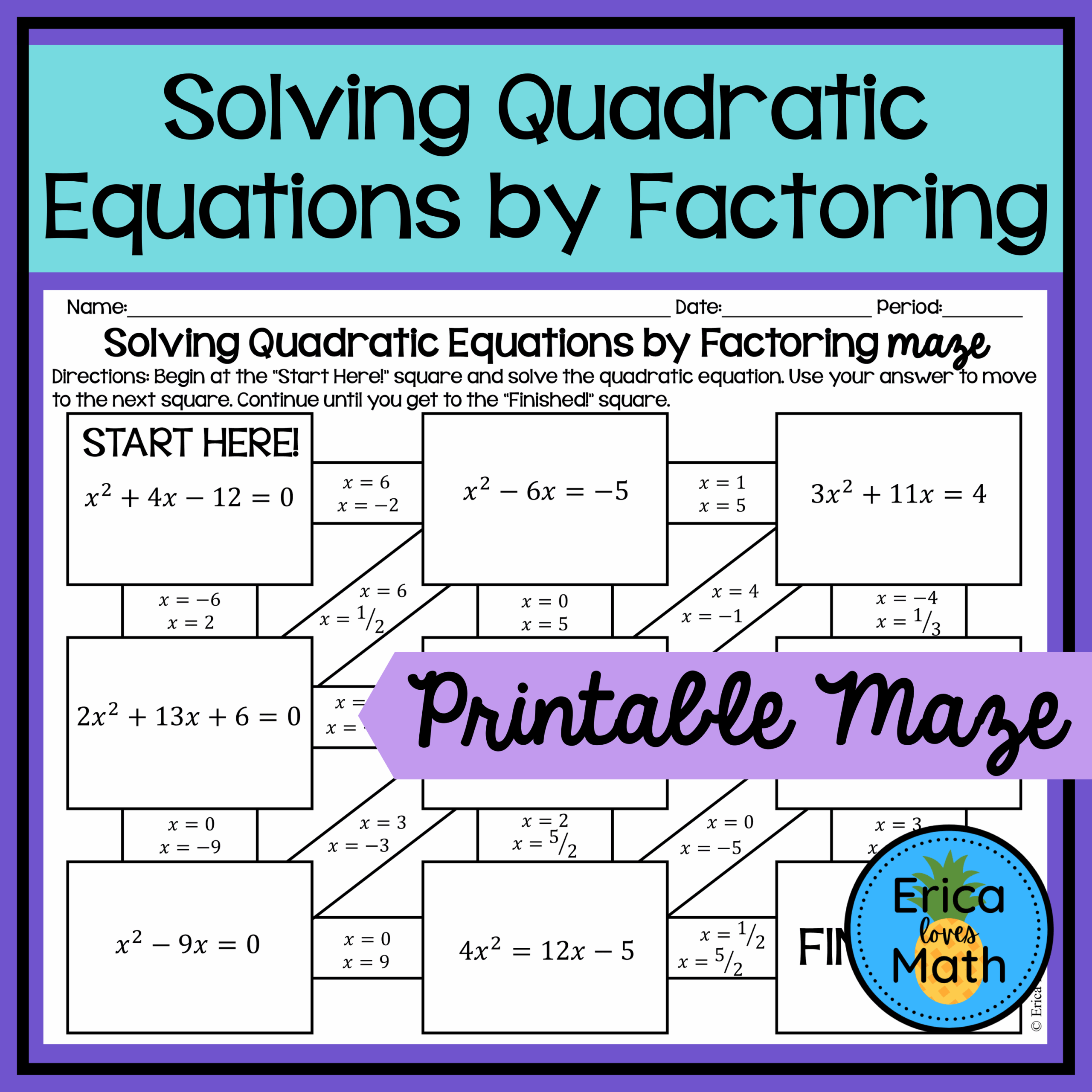 Solving Quadratic Equations By Factoring Digital Activity Maze Made By Teachers