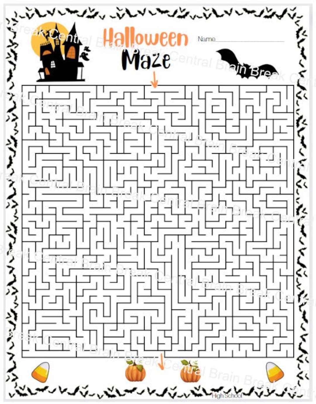 High School Halloween Maze With Answer Key Printable Etsy
