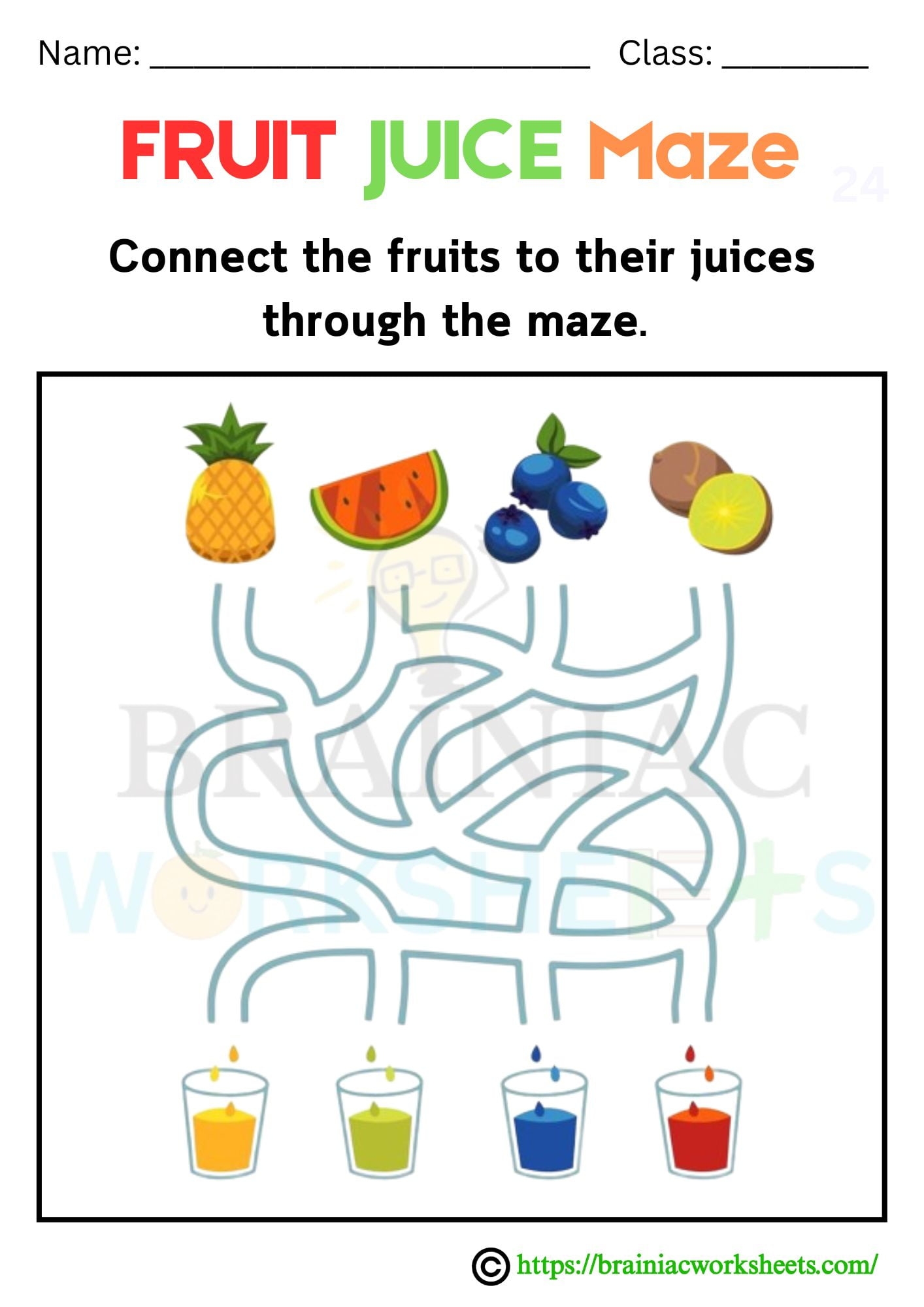 Fruit Juice Maze Ukg IQ Worksheet Brainiac Worksheets