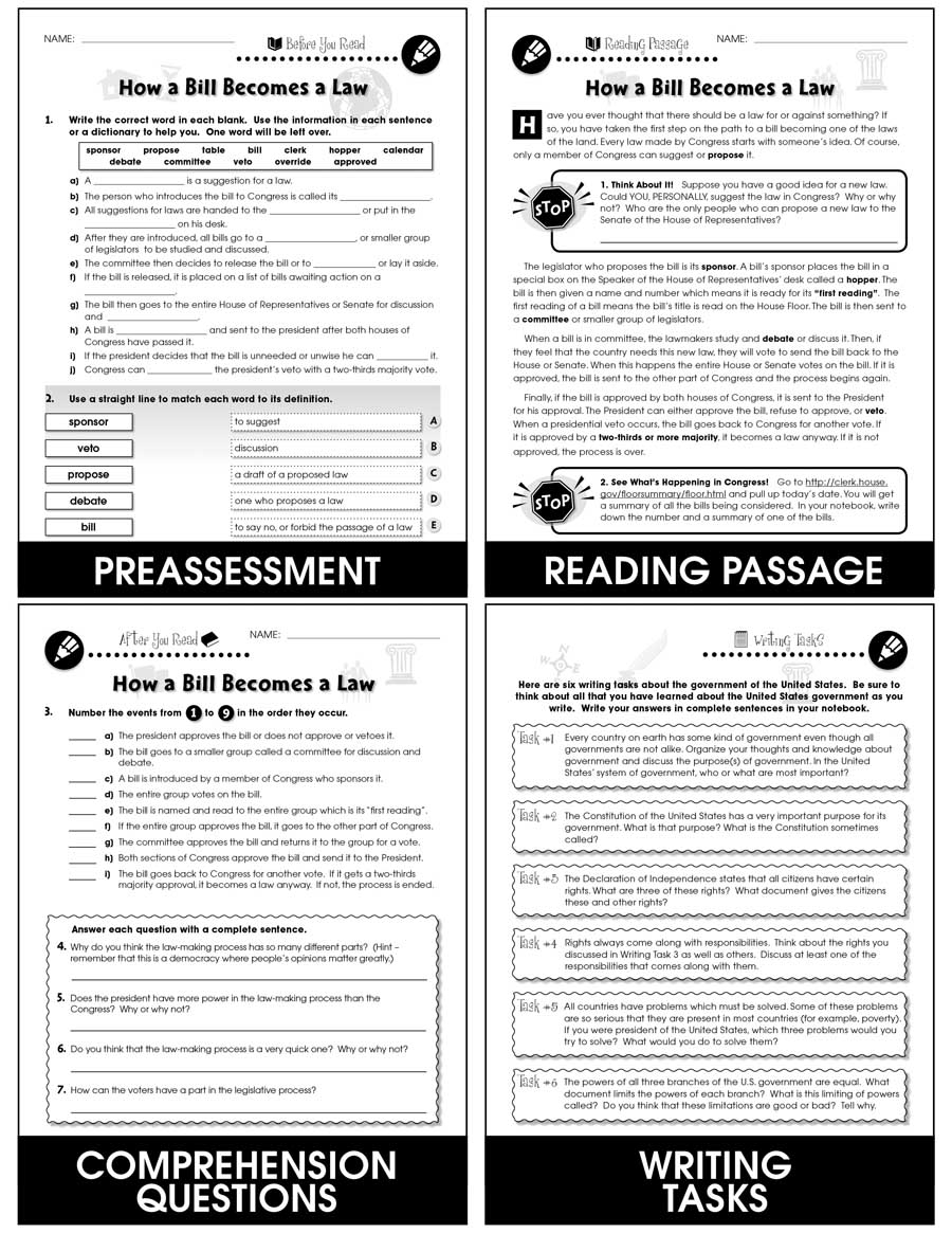 How A Bill Becomes A Law Kids Discover Online Worksheets Library