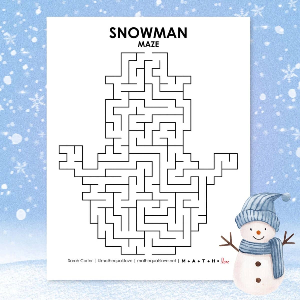 Snowman Maze Printable Math U003d Love