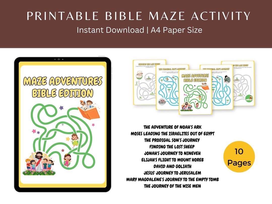 Printable Bible Maze Activity Maze Adventure Bible Edition 10 Unique Bible Maze Printables For Fun Learning Creative Printables For Kids Etsy