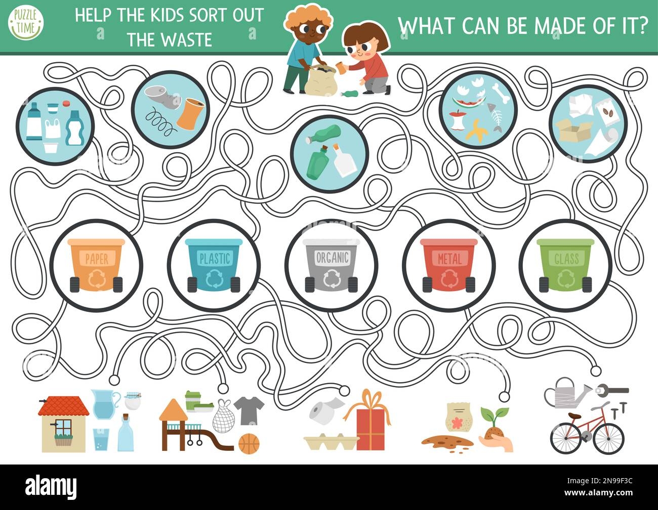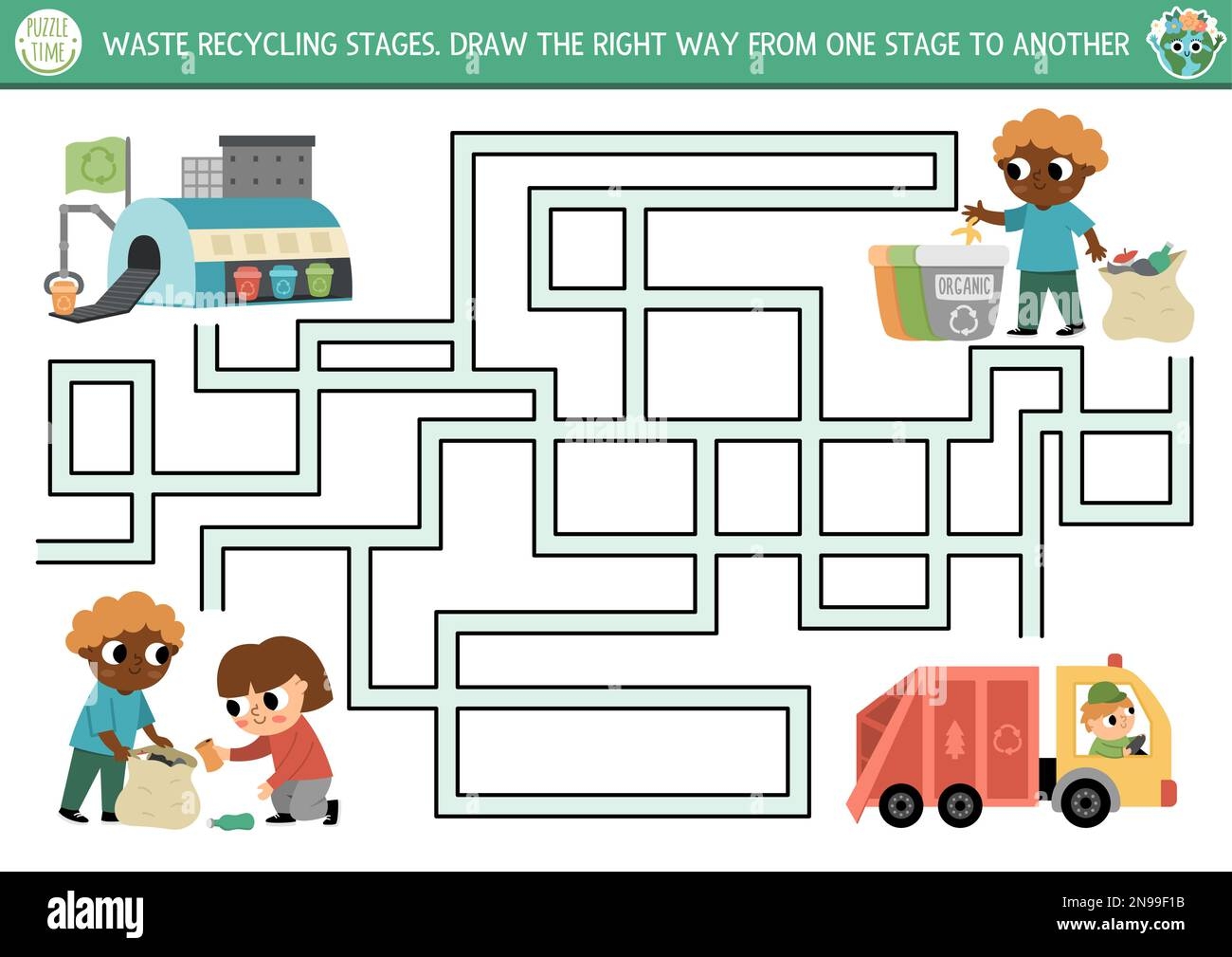 Ecological Black And White Maze For Children With Kids Sorting Out The Rubbish Earth Day Preschool Activity Eco Awareness Or Zero Waste Labyrinth Co Stock Vector Image U0026 Art Alamy