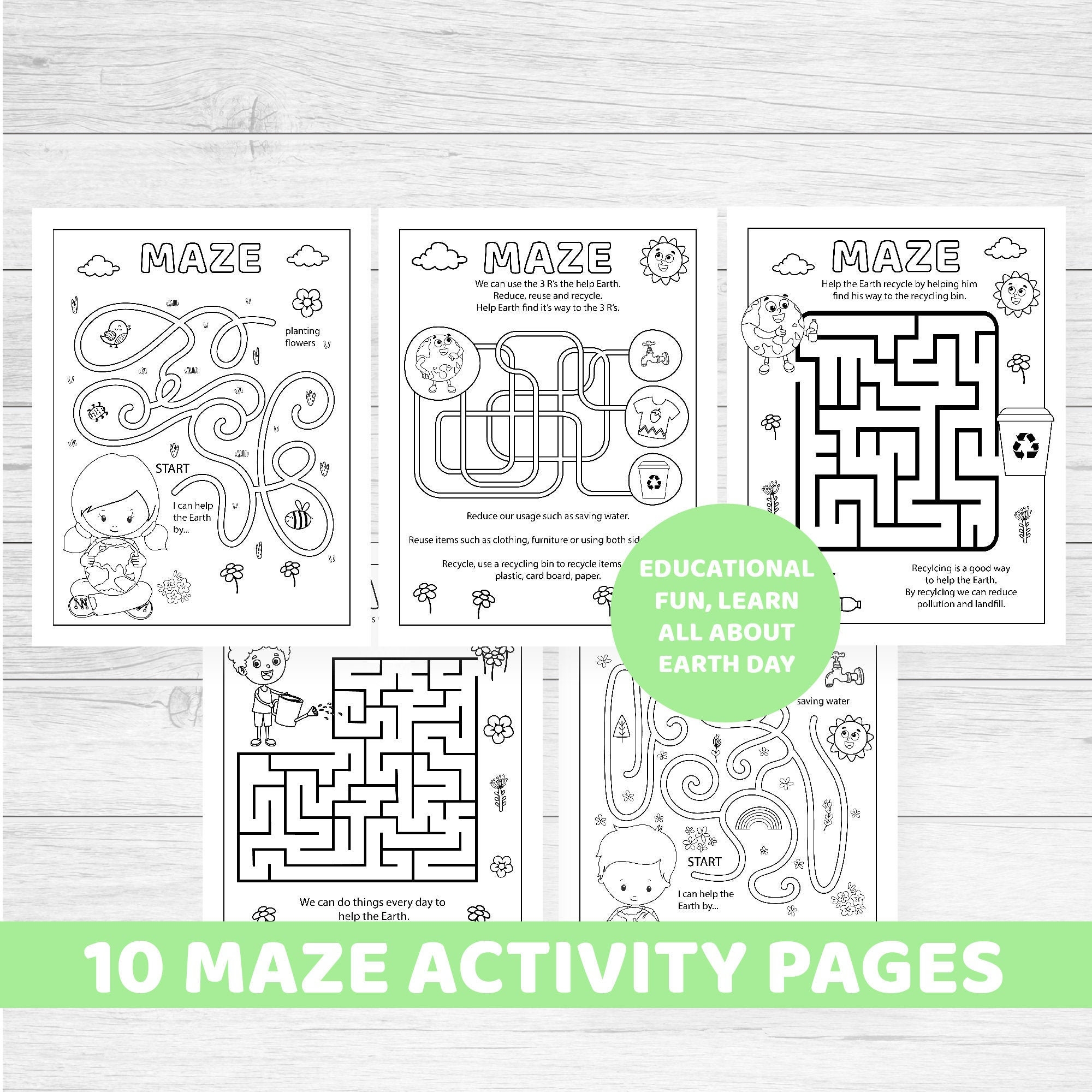 Earth Day Activities Mazes For Kids Printable Instant Download Etsy