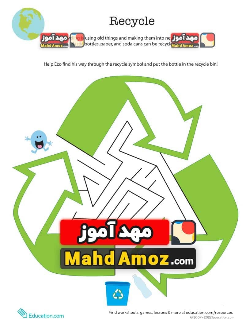 This worksheet features a colorful maze that students can navigate while learning about different types of recyclable materials. It’s a great way to introduce kids to the concept of recycling and the impact it has on the environment in a playful and interactive manner.