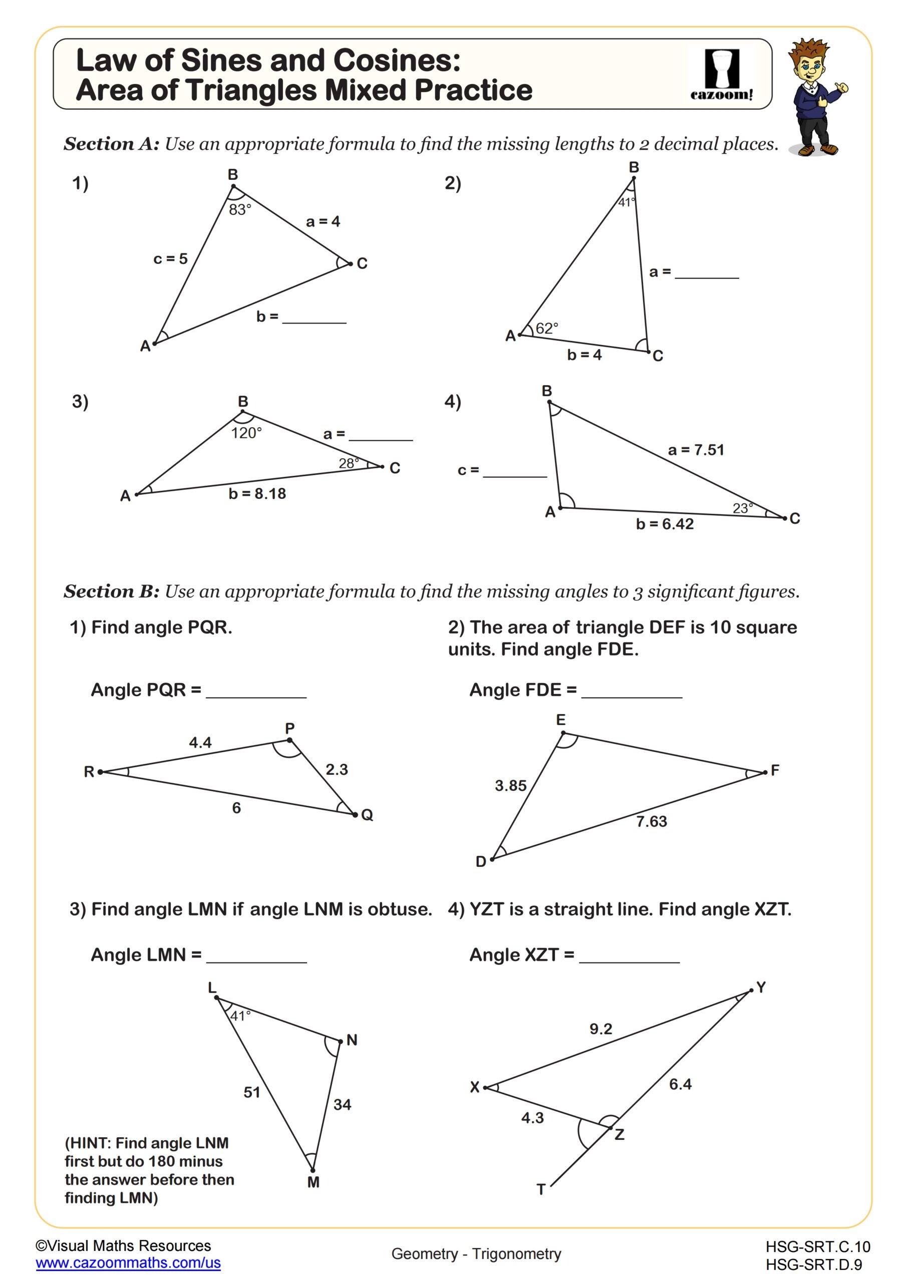 This maze worksheet is a fantastic way to challenge your students while reinforcing their understanding of these important trigonometric concepts. As they navigate through the maze, they will solve problems related to the Law Of Sine And Cosine, making learning interactive and enjoyable.