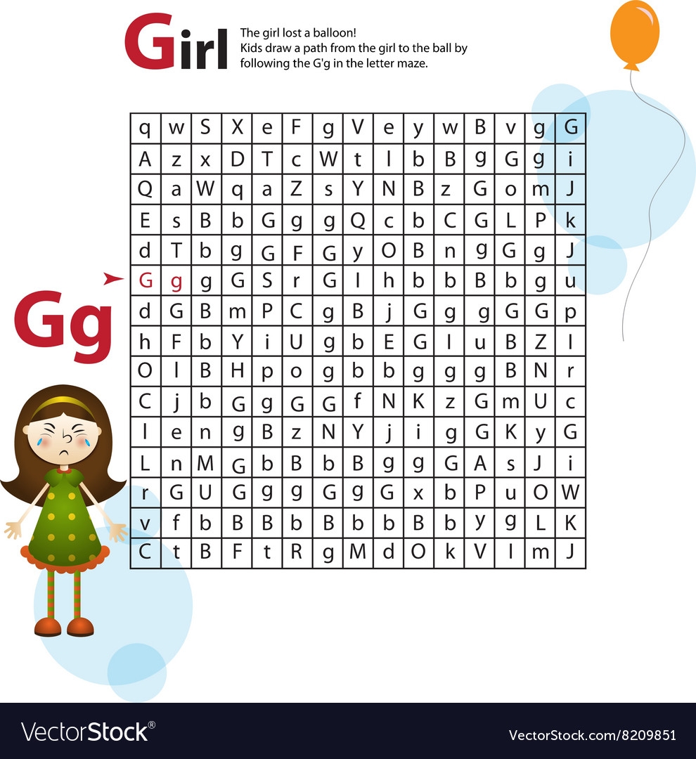 Letter Maze G This Worksheet Helps Kids Recognize Vector Image
