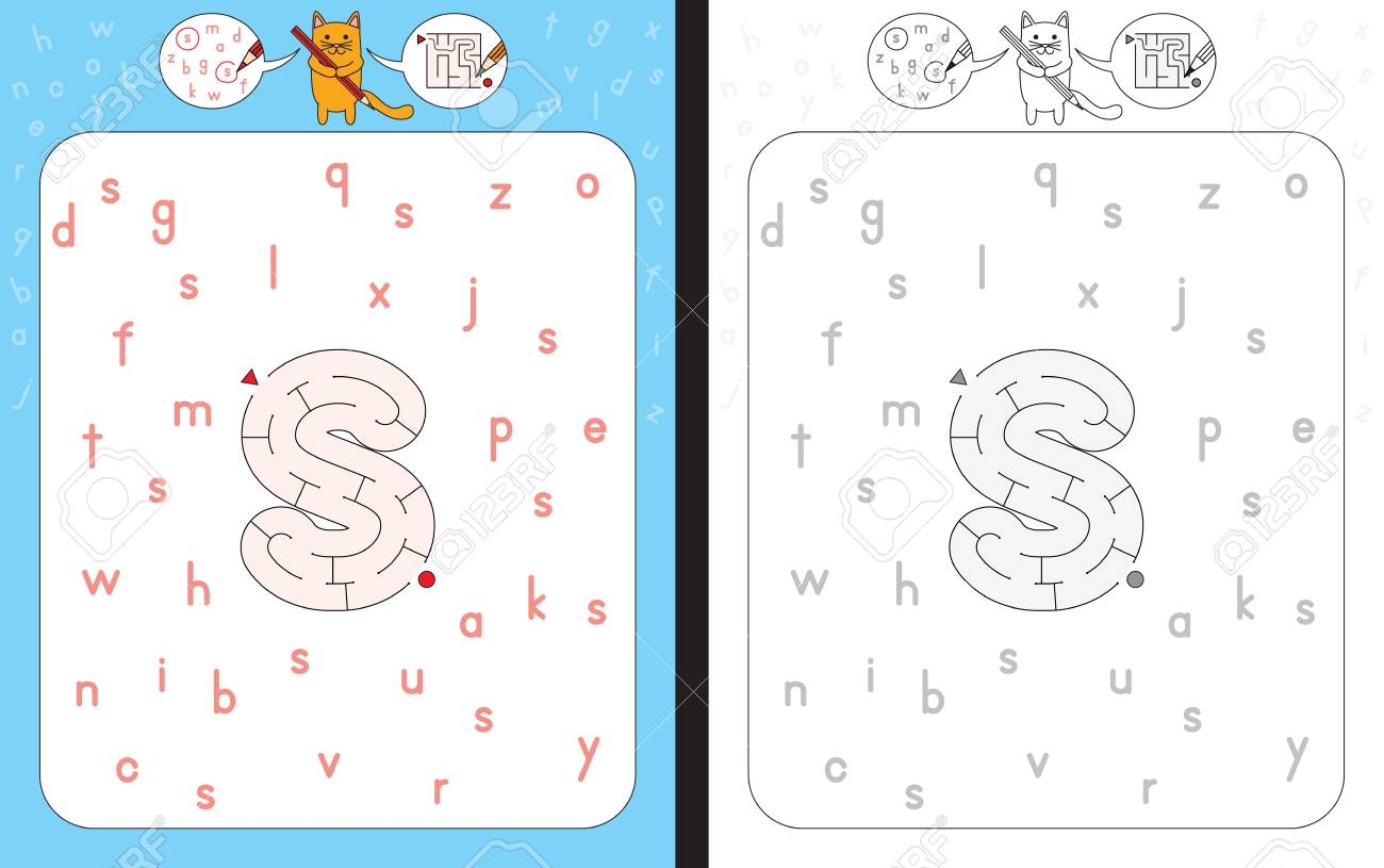 Worksheet For Learning Alphabet Recognizing Letter S Maze In The Shape Of Letter S Royalty Free SVG Cliparts Vectors And Stock Illustration Image 89195924