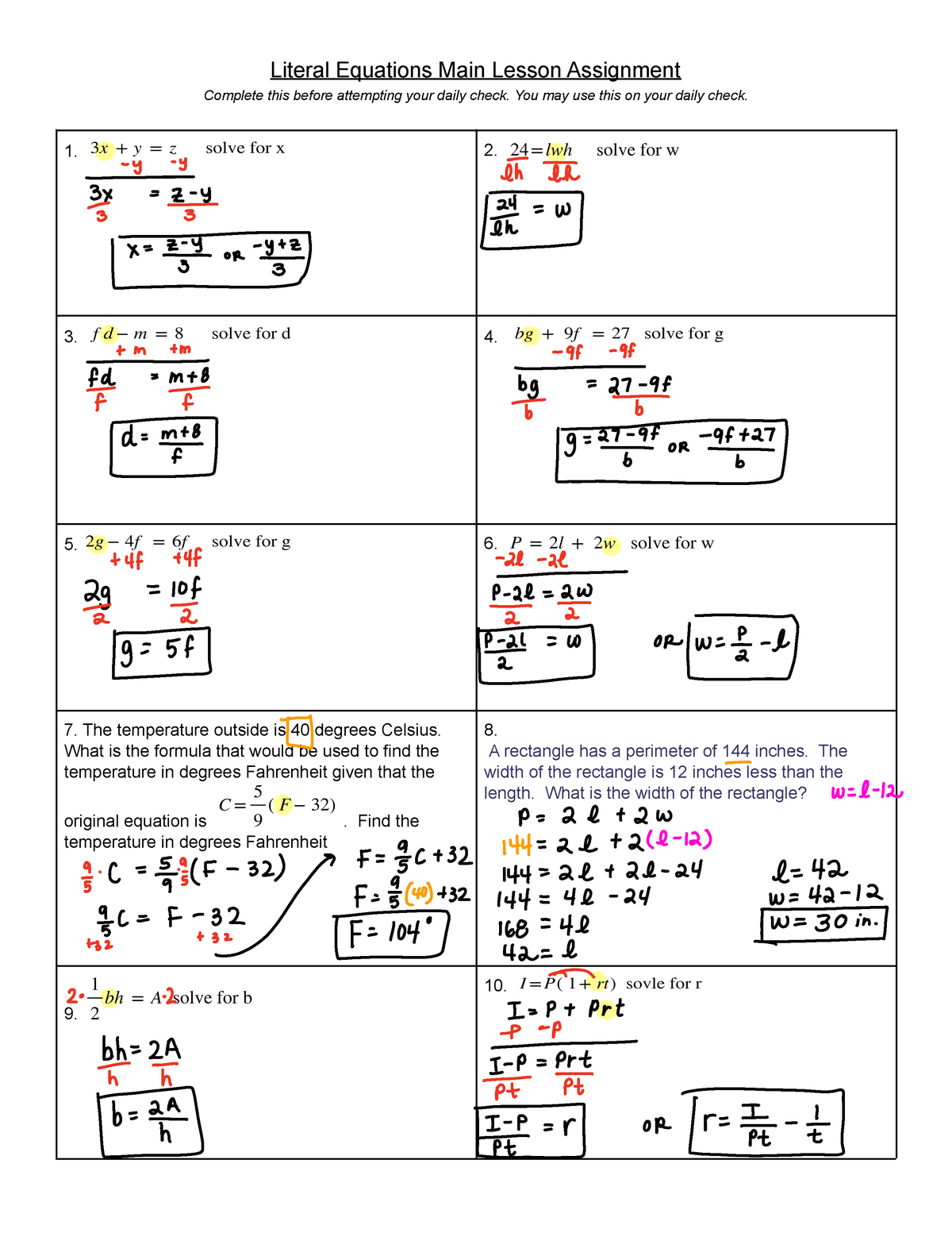Whether you’re a student struggling with algebra or a teacher looking for resources, having access to accurate worksheet answers can make all the difference. By understanding the steps involved in solving literal equations, you can build your confidence and skills.