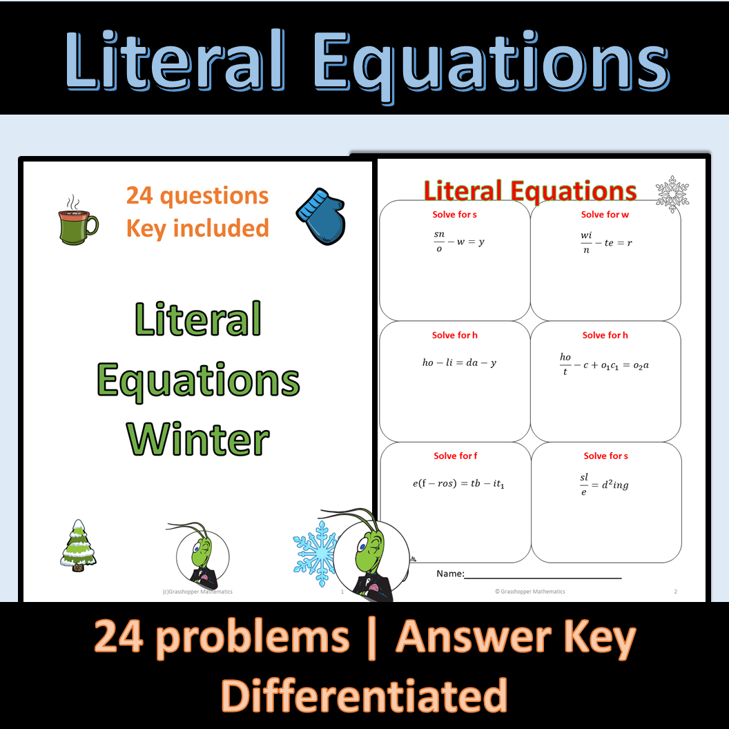Winter Seasonal Literal Equations Made By Teachers