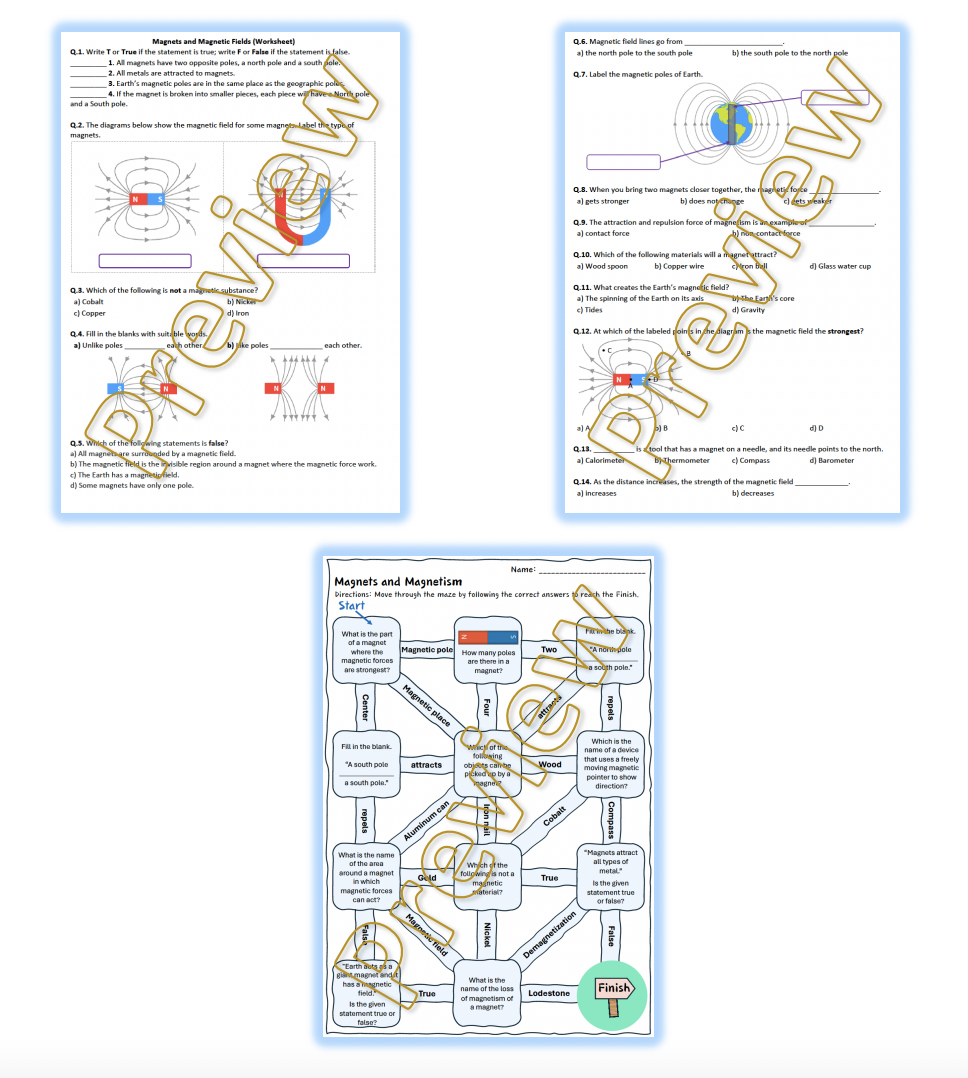 This worksheet is designed to challenge students to navigate through a maze by using their knowledge of magnetism. By solving the problems on the worksheet, students will uncover the correct path through the maze, making learning about magnetism both educational and entertaining.