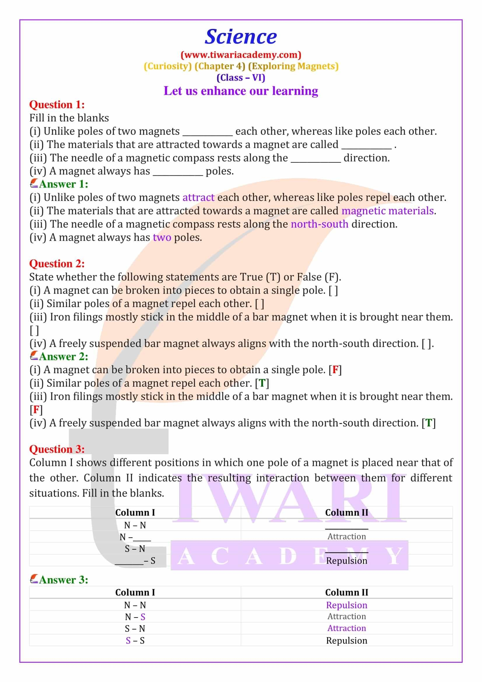 NCERT Solutions Class 6 Science Curiosity Chapter 4 Exploring Magnets