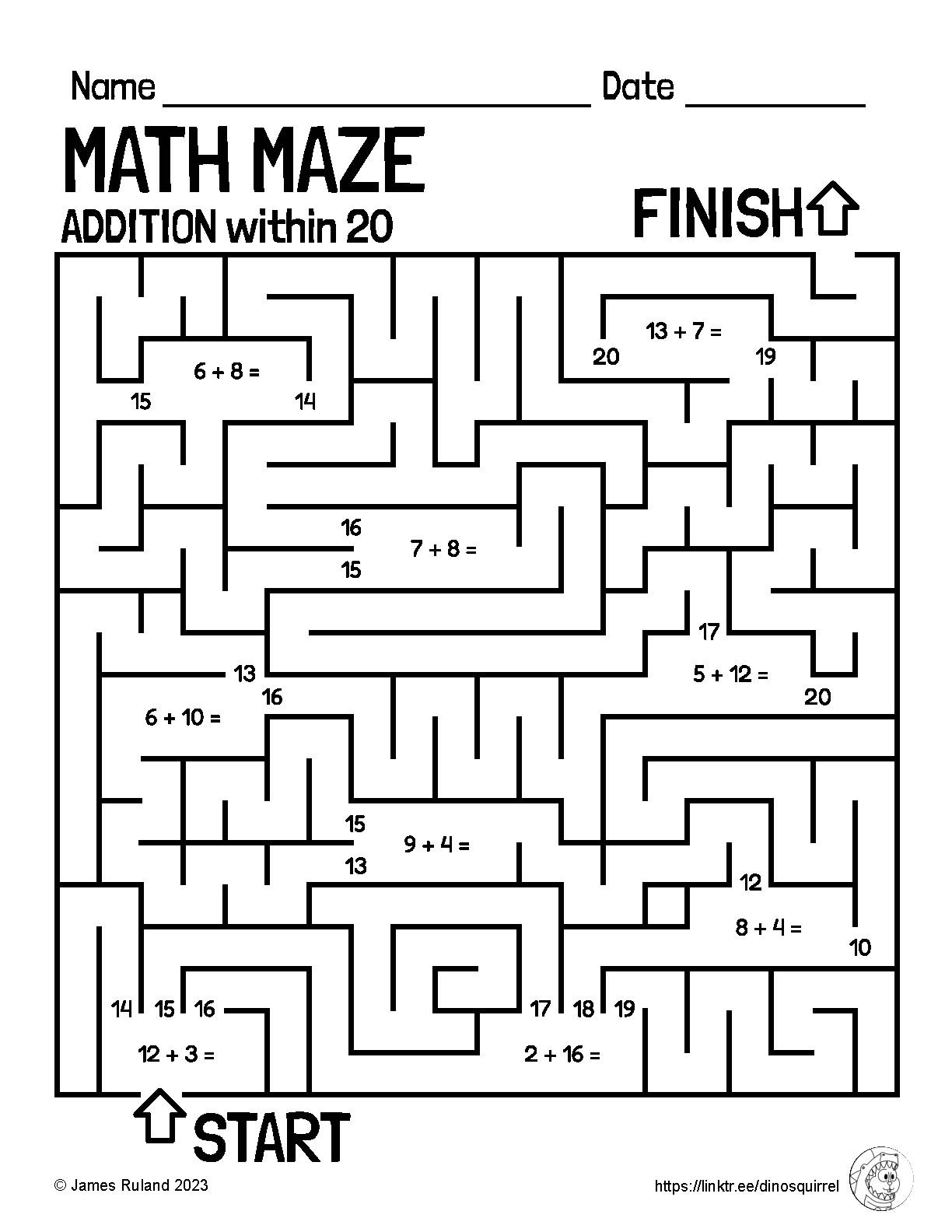 MATH MAZE Addition And Subtraction Within 20 Customizable Math