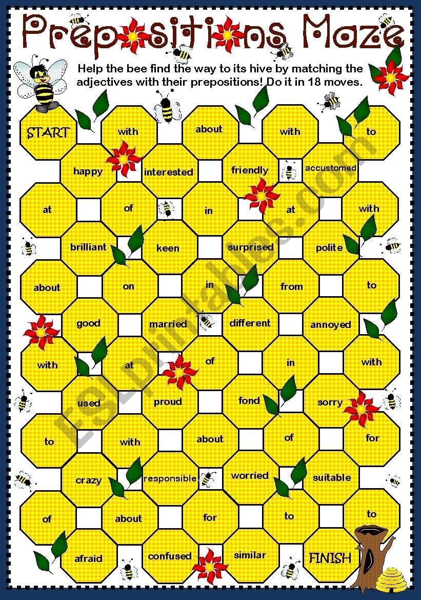Adjective Prepositions Maze B U0026 W ESL Worksheet By Gabitza