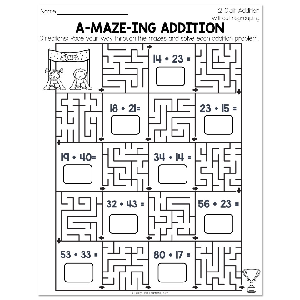 Math Worksheets 2 Digit Addition Without Regrouping A Maze ing Addition Lucky Little Learners