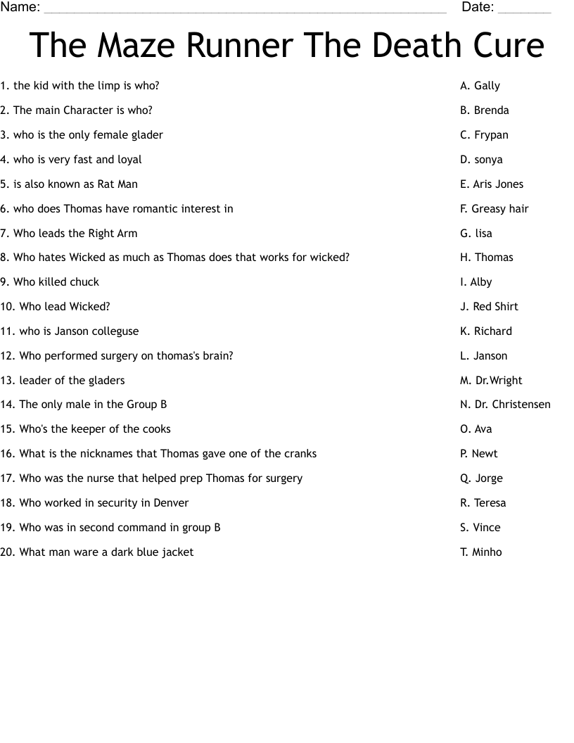 The Maze Runner The Death Cure Worksheet WordMint