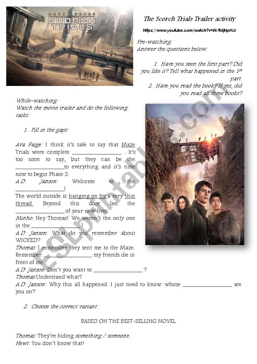 Maze Runner The Scorch Trials Trailer Activity ESL Worksheet By Kras9