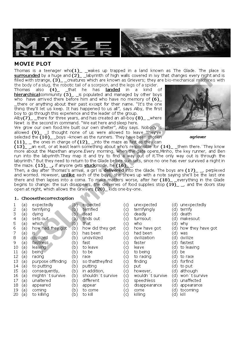The Maze Runner movie ESL Worksheet By Achilipus