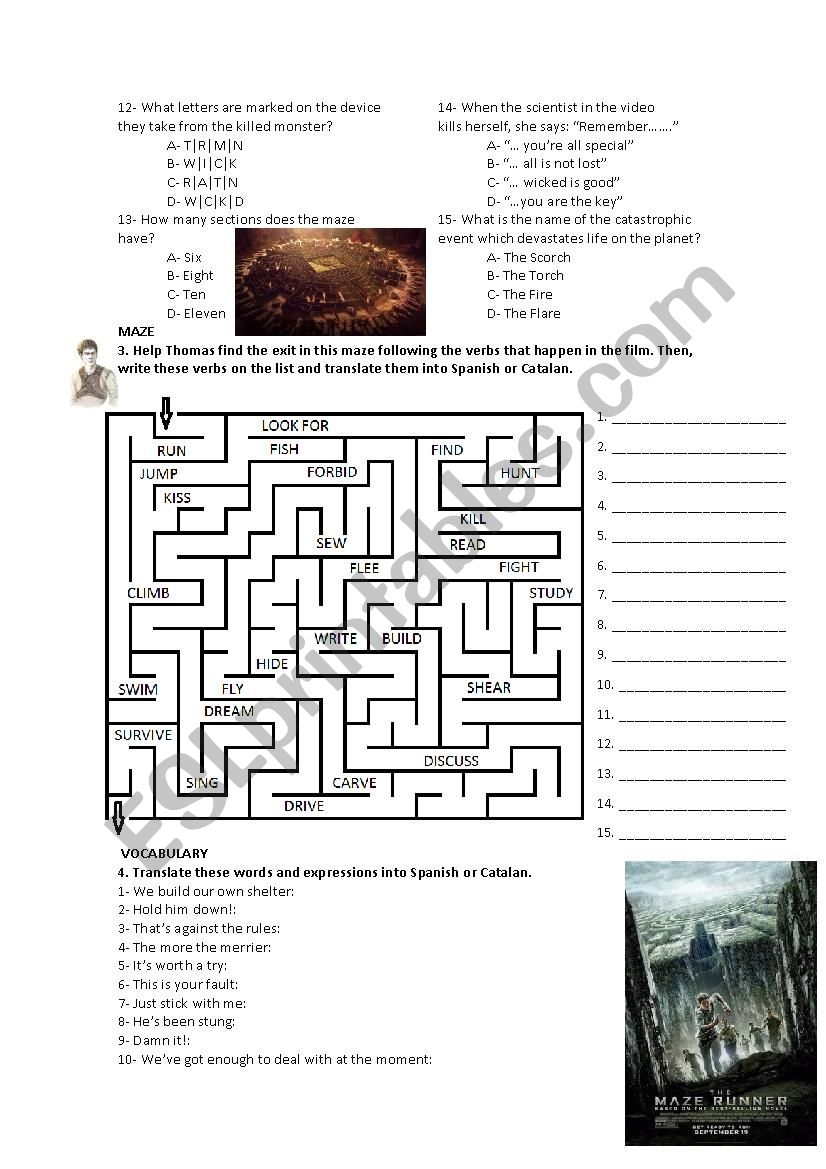 The Maze Runner ESL Worksheet By Cris M