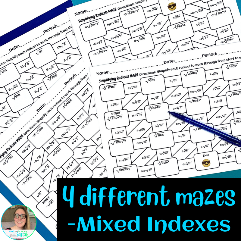 4 Simplifying Radical Expression Mazes W Variables Square Cube U0026 Higher Indexes Math And Science Sarah